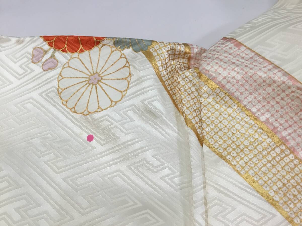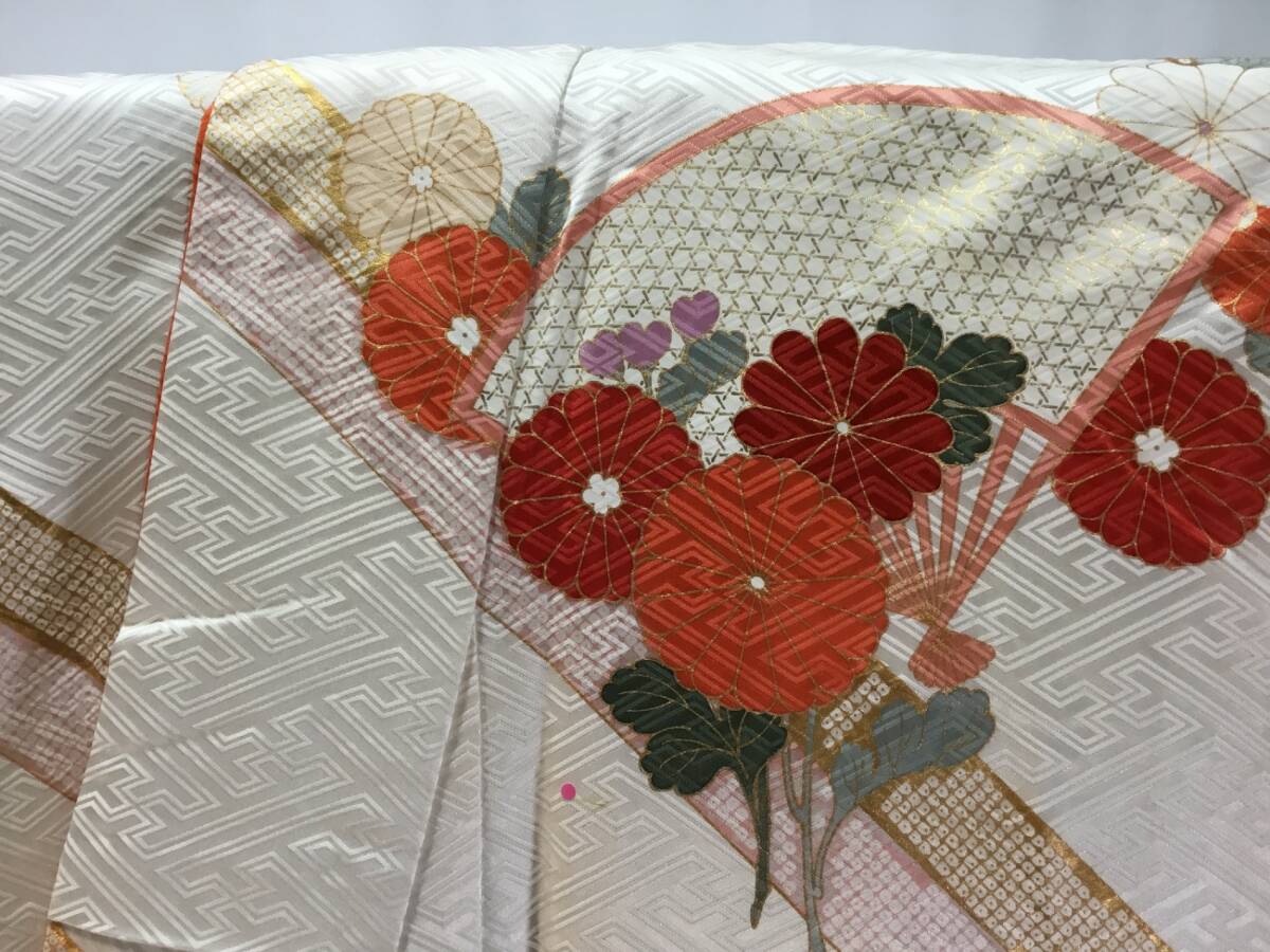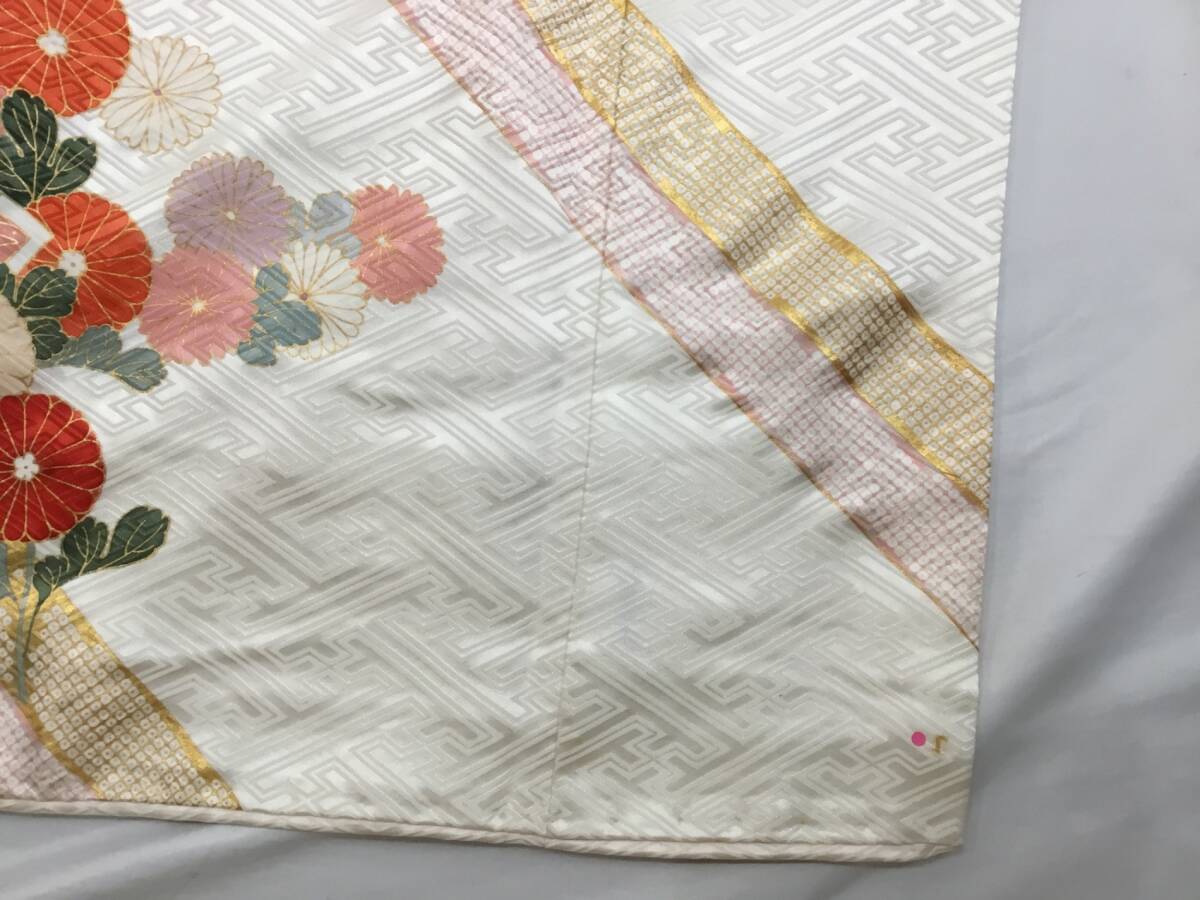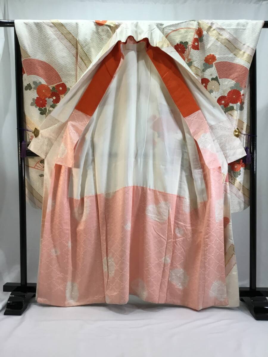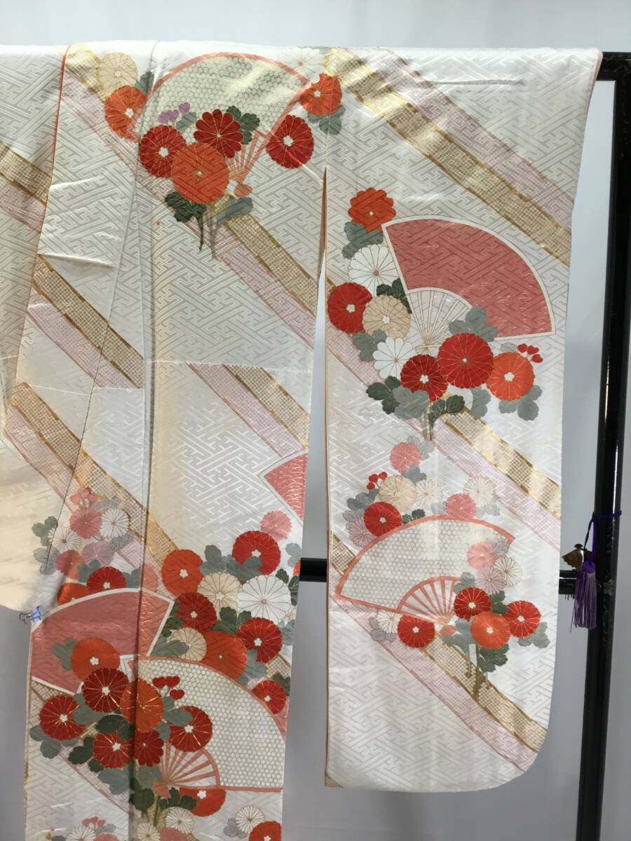 本振袖/美品/正絹/白地/扇と菊/重衿付/比翼/仕立上がり/適応身長147~155㎝/7030 |