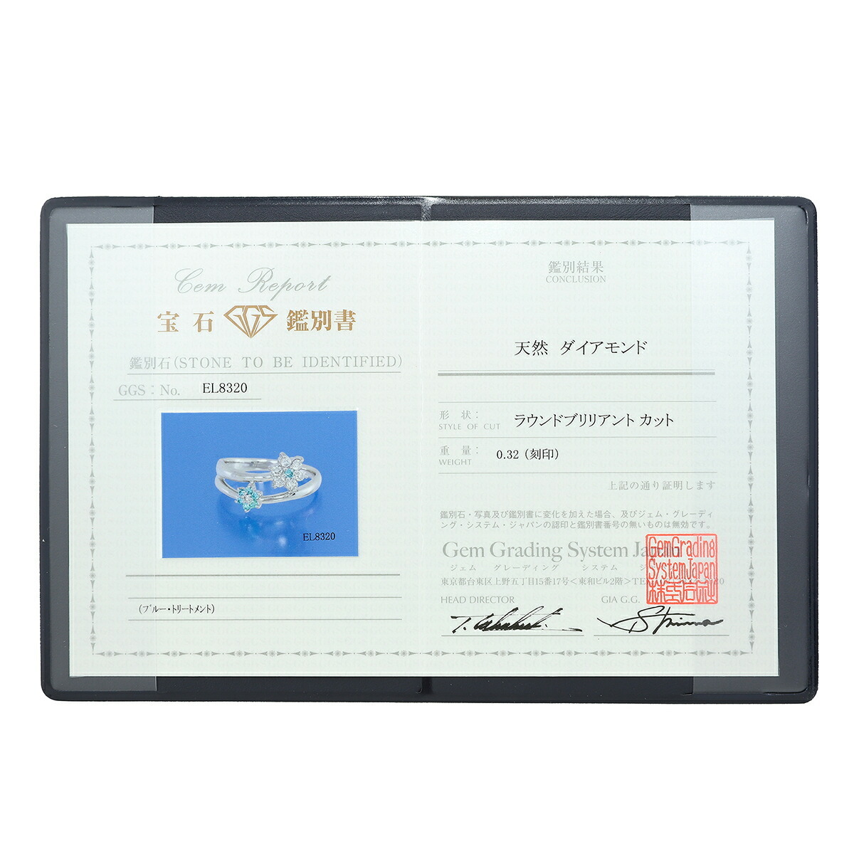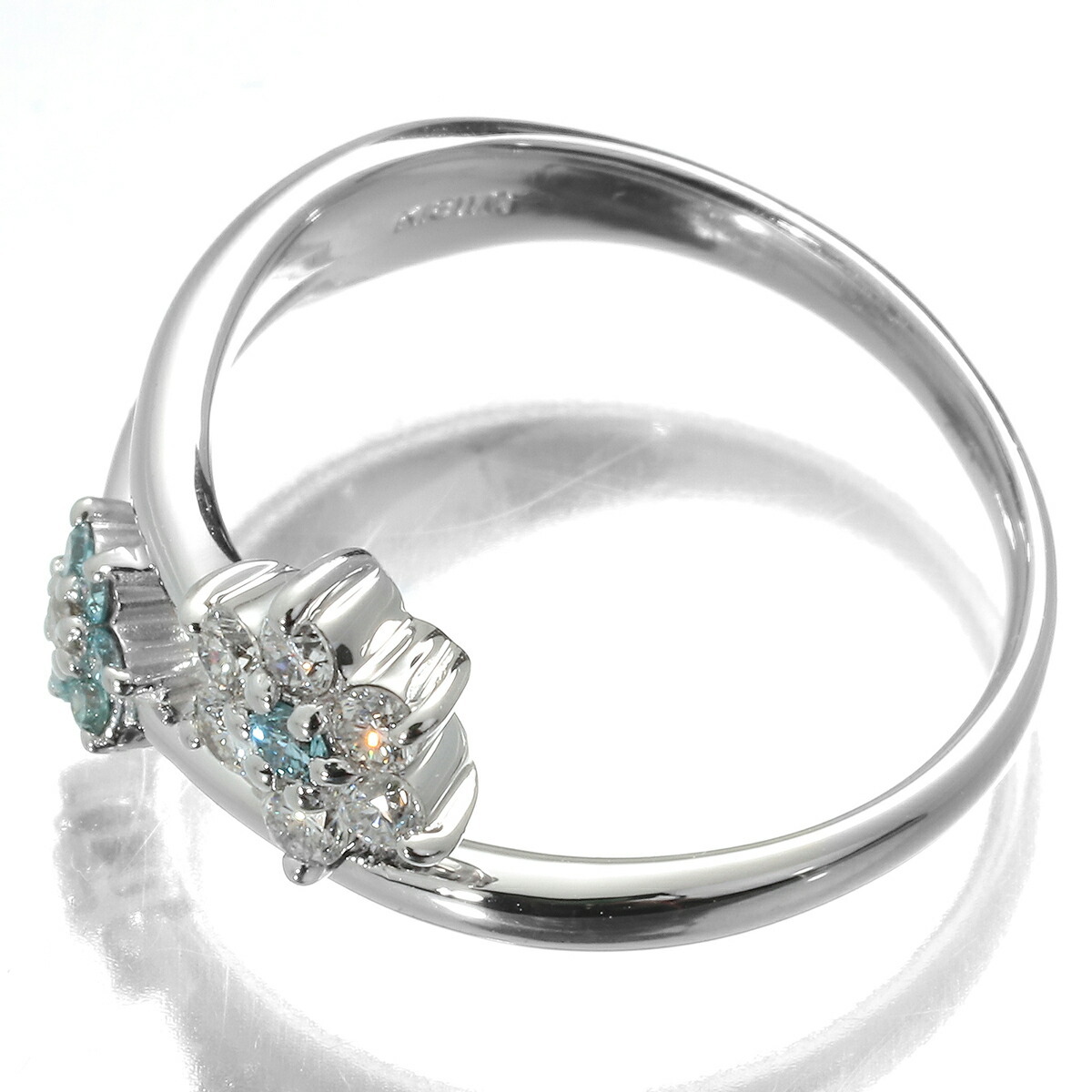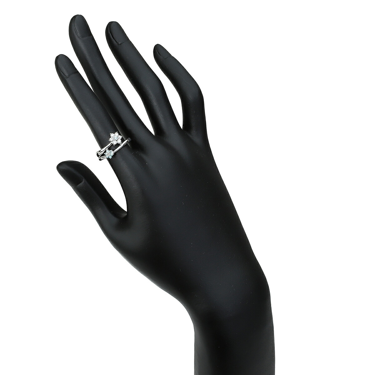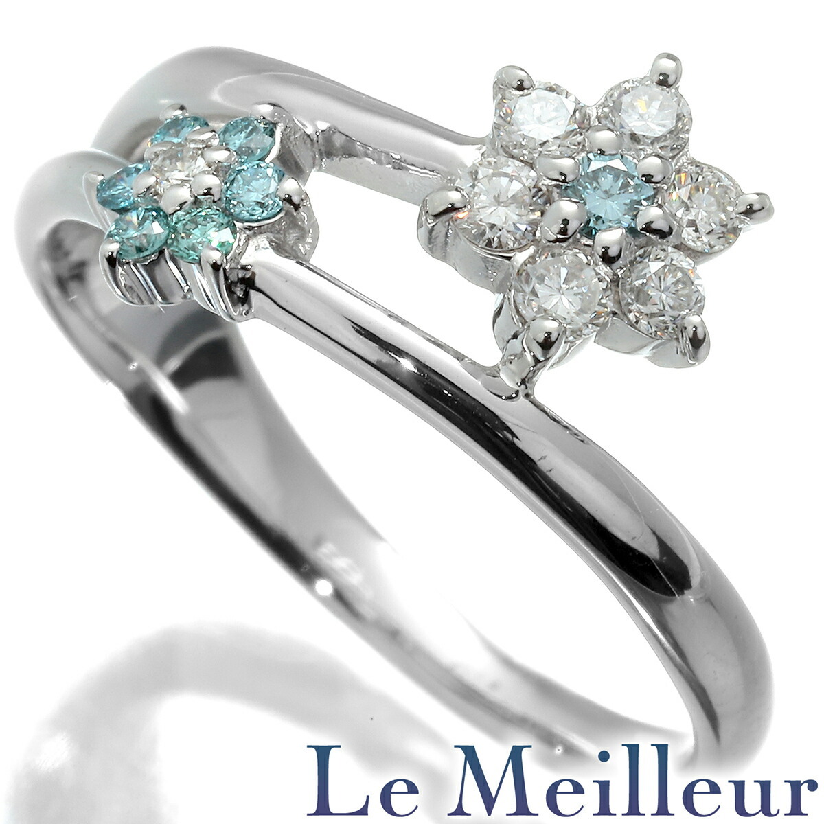 ブルートリートメント加工がされたダイヤモンドのフラワーがキュートなリング。青空のように明るい青色のカラーリングは身に着けるだけで快活な印象をプラスすることができるアクセサリーです。