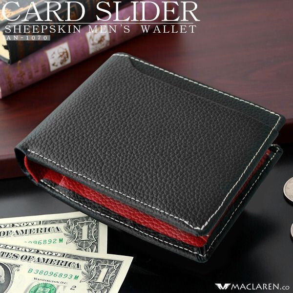 【今月イチオシ限定SALE】【送料込み】【激安】【新品】【税込み】シープスキン BOX型小銭入れ付き シンプル ショートウォレット BK/RD