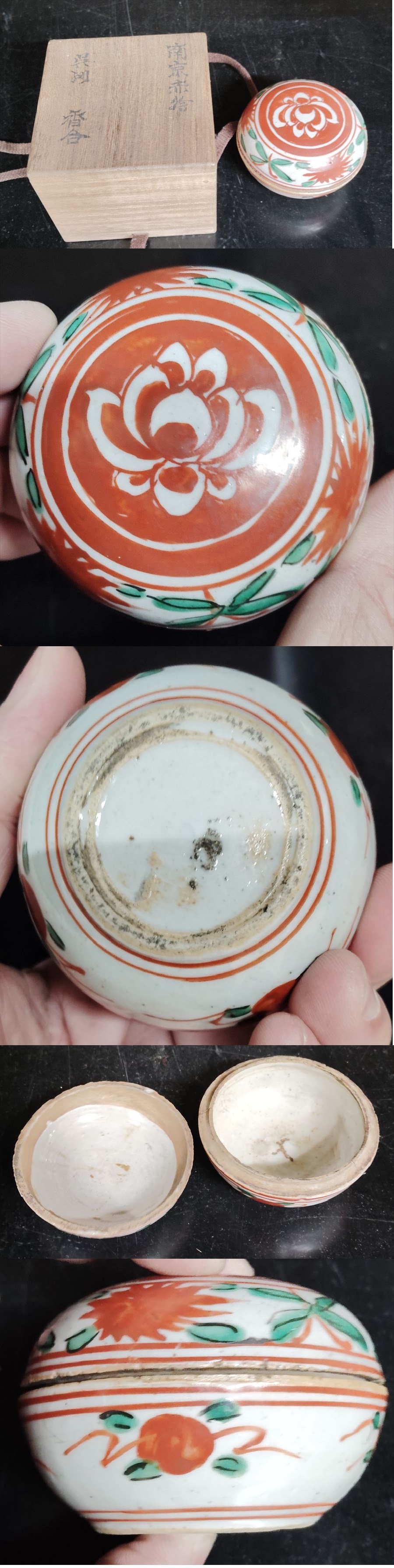明代 大明赤絵 呉須 香合 粉彩 花図 唐物 共箱 染付 青花