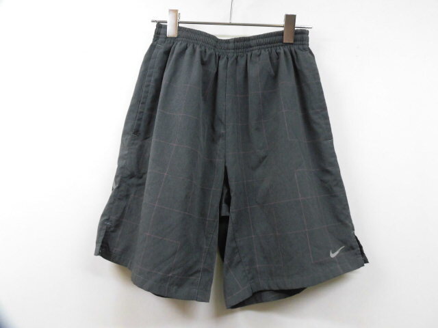 NIKE ナイキ チェック柄 ロゴマーク ハーフパンツ ショートパンツ スポーツウェア ウエストゴム ボトムス グレー 灰色 Sサイズ