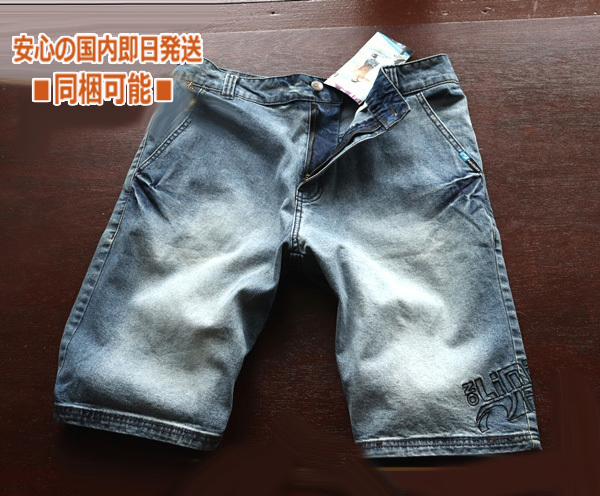 新品■NOLIMITED サーフ デニム パンツ32 M~L ウエスト83cm◆メンズ サマー ボトムス ハーフパンツ デニム /vintage 刺繍 ジーンズ 腰パン