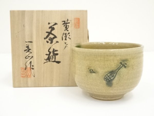 ys7028891; 寺田美山造 黄瀬戸御題歌茶碗(共箱)【道】