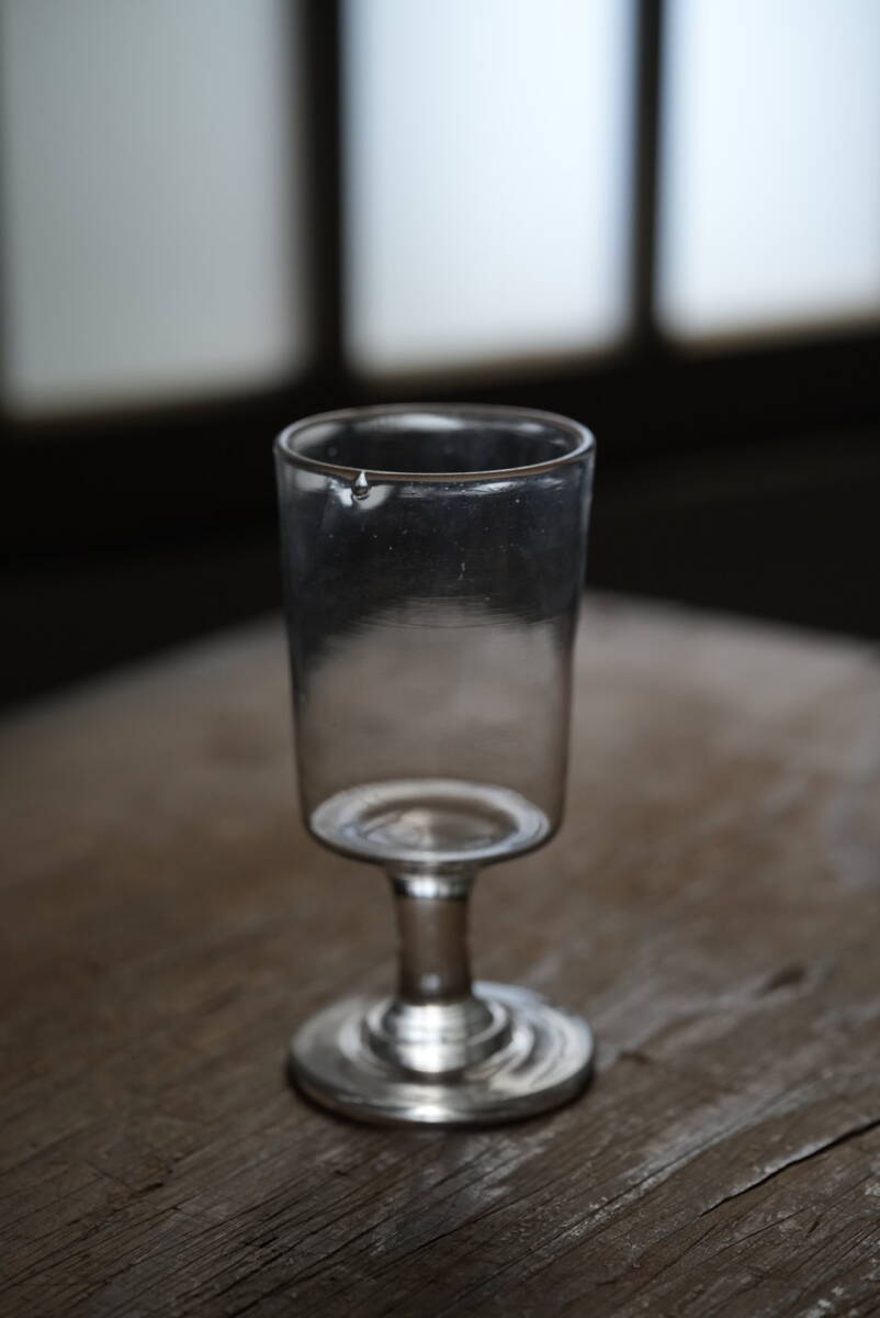 古い手吹きガラスのシンプルな筒型のビストログラス_中 / 19世紀・フランス / アンティーク 古道具 ワイングラス D