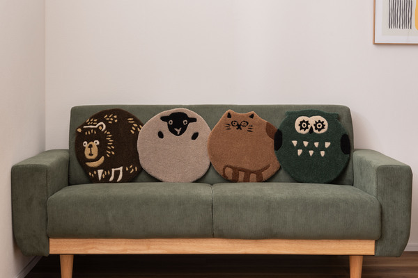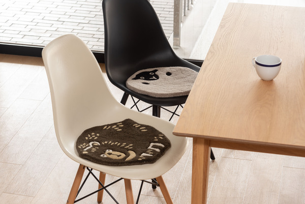 可愛くて癒される表情のアニマルたちがモチーフのシートクッション。ウールを贅沢に使用する事で、ウール特有の絶妙な風合いが表現されているのもポイントです。 チェアやベンチの上に置いて しっかりとした厚みで安心 様々なチェアに合わせやすいサイズ感