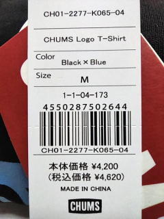 *商品名: CHUMS チャムス