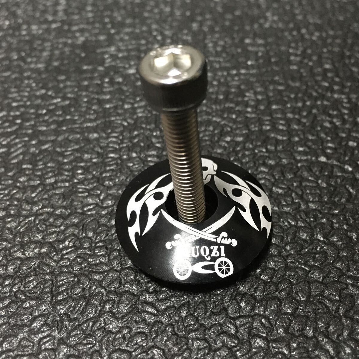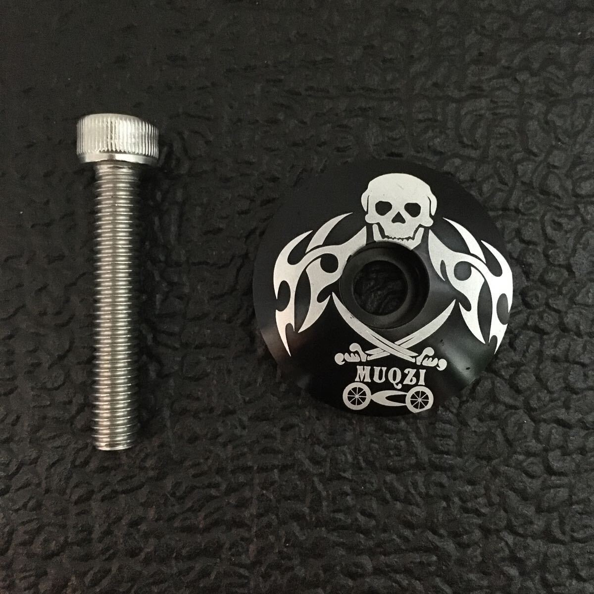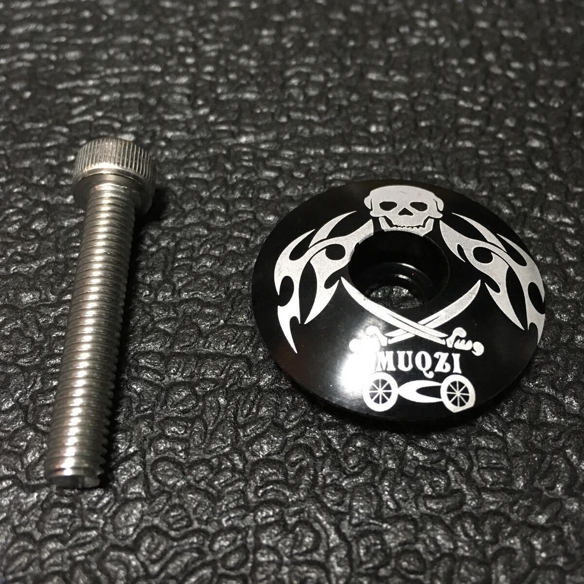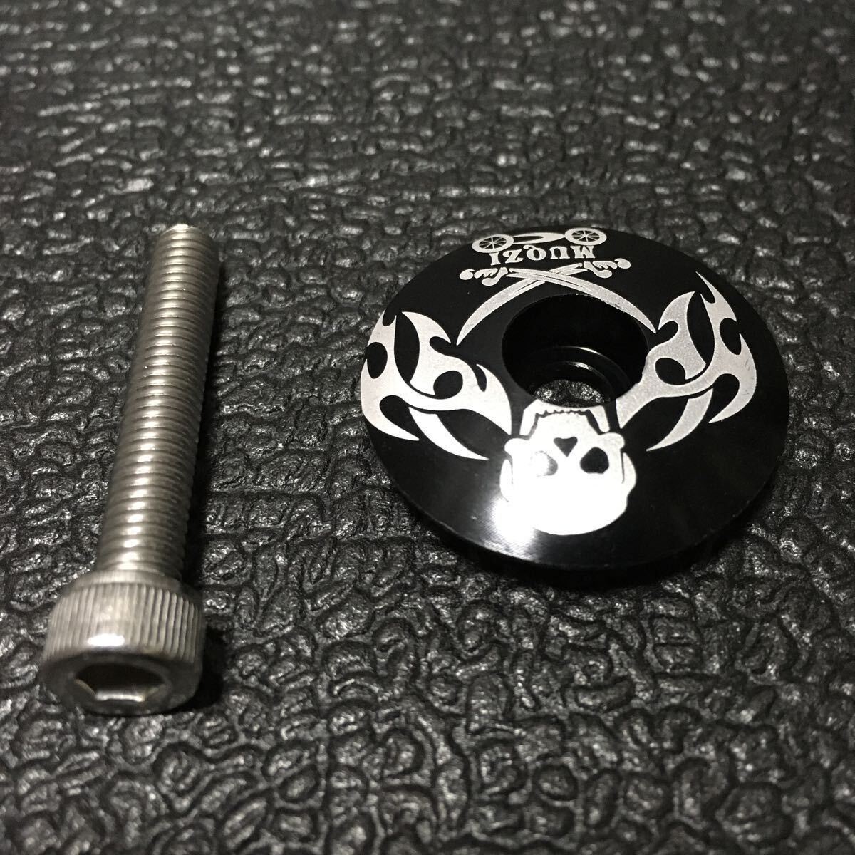 ☆ 即決・新品!! 自転車 軽量 アルミ トップキャップセット OS用 黒(スカル柄) ☆