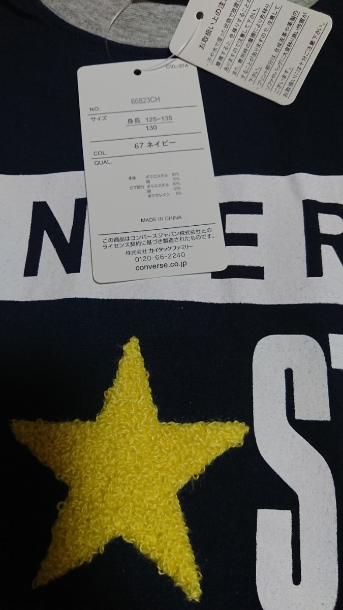 @♪0930☆未使用・保管品☆CONVERSE☆長袖Tシャツパジャマ 紺130①