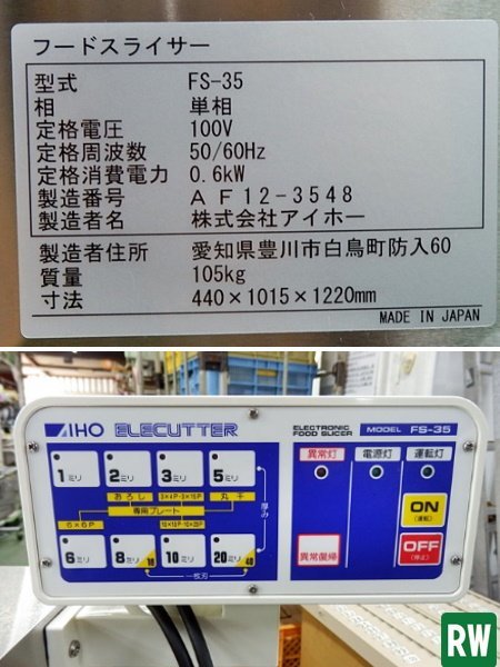 | フードスライサー アイホー/AIHO FS-35 100V 2016年製 50/60Hz 野菜調理器 フードカッター 業務用 試運転動画有り |