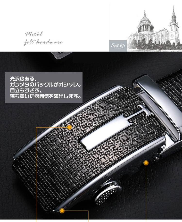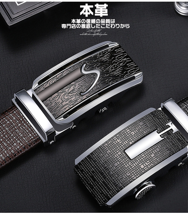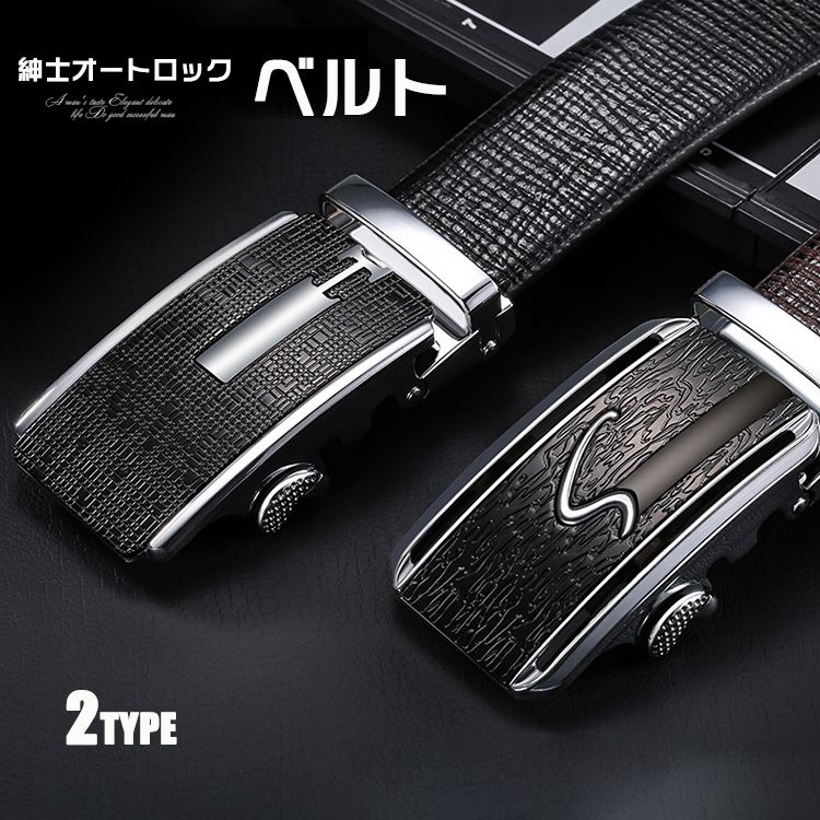 ベルト レザー 本革 メンズ オートロック 型押し 穴なしベルト ビジネス ベルト ビジネスや 通勤用 ベルト 牛革 使用の紳士ベルト 2タイプ
