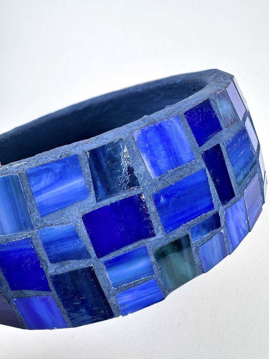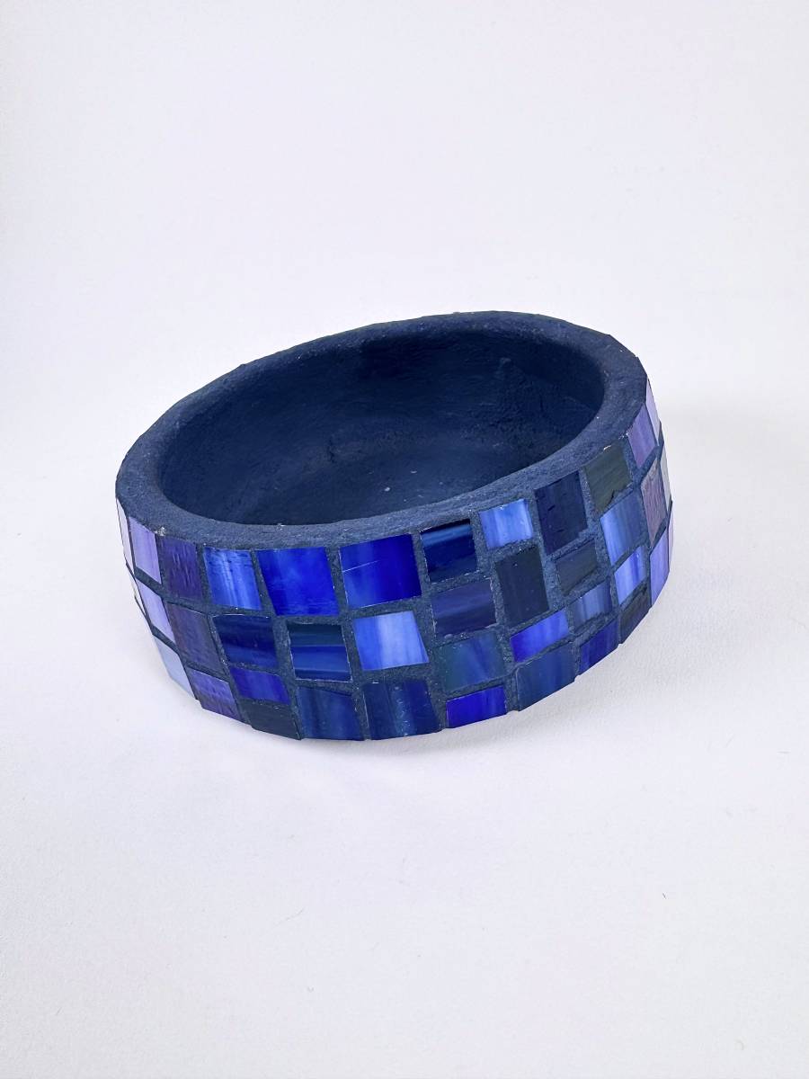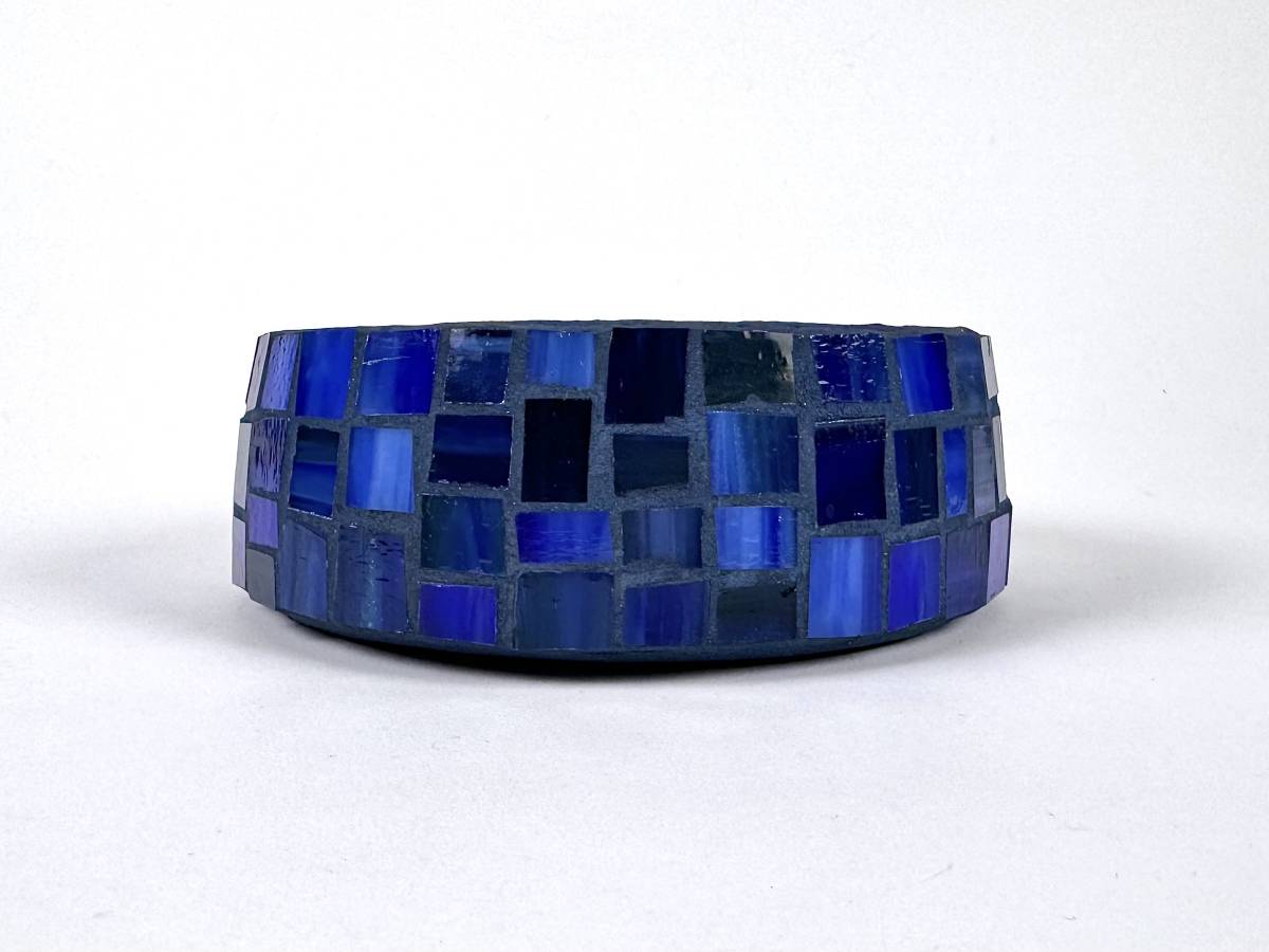 モザイク★陶器 小物入れ★イタリア製 丸型 ハンドメイド アクセサリー入れ 灰皿 ブルー 青 ステンドグラス アート オブジェ インテリア