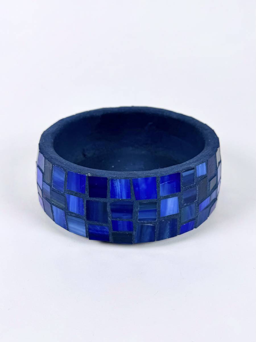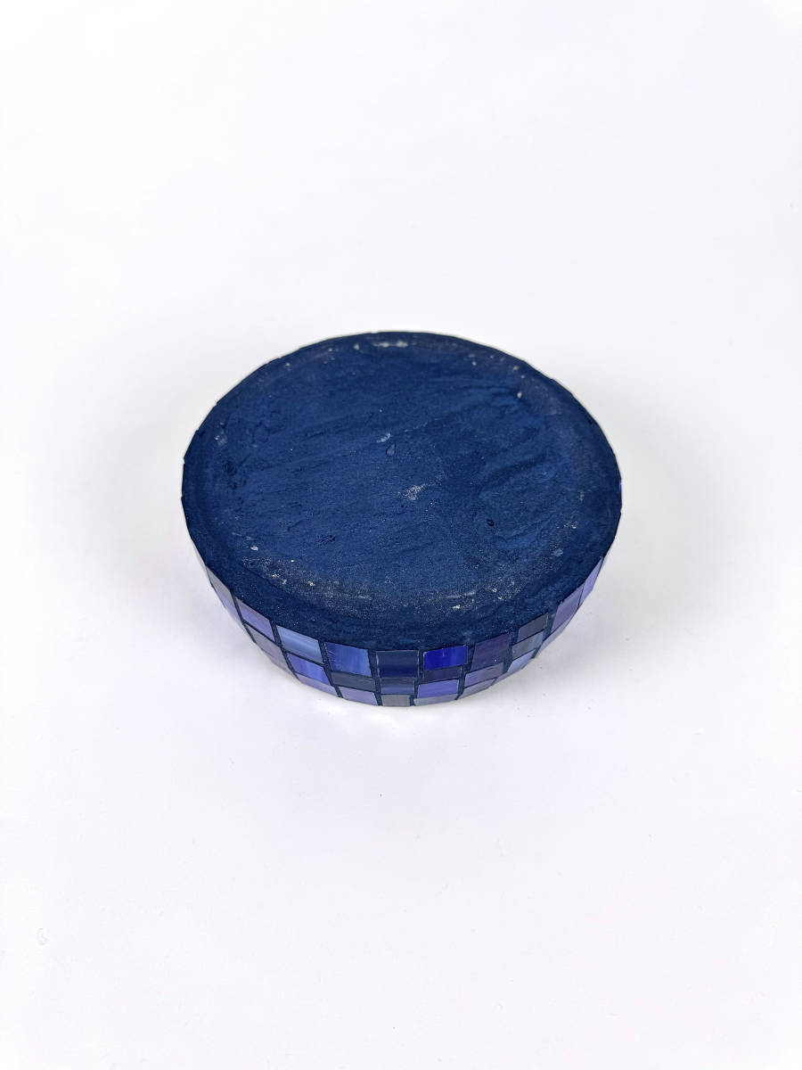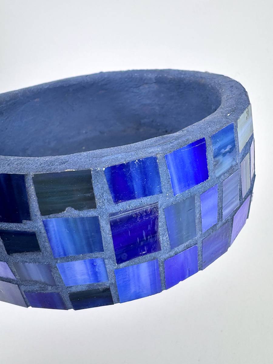 モザイク★陶器 小物入れ★イタリア製 丸型 ハンドメイド アクセサリー入れ 灰皿 ブルー 青 ステンドグラス アート オブジェ インテリア