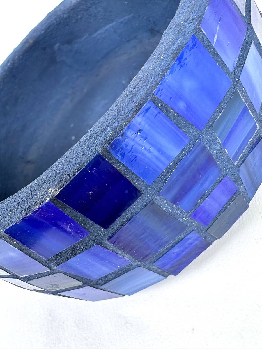 水色・青・藍色・・ブルー系のグラデーションを奏でるモザイクガラスを使い、モザイク職人がハンドメイドで仕上げた色鮮やかな小物入れになります★