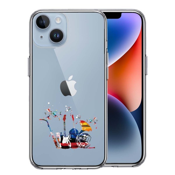 iPhone14Plus ケース クリア 楽器 たち スマホケース 側面ソフト 背面ハード ハイブリッド