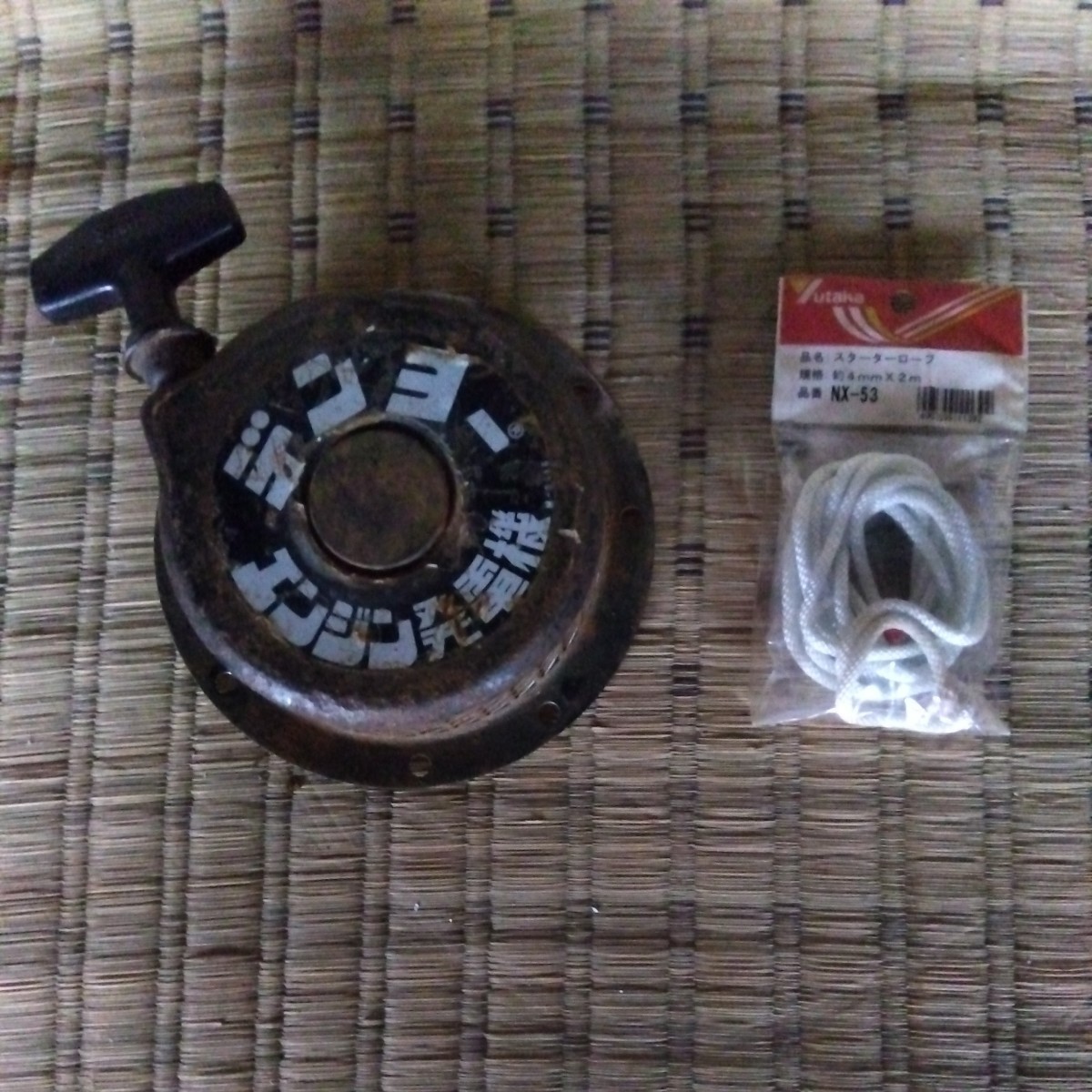 デンヨーの発電機から外した品物に成ります。程度は欠けが有ったり、サビ、キズ有り、余り良くないかも知れませんが、画像からご理解、ご納得頂ける方居ましたら、宜しくお願いします。スターターロープ劣化している様なので、様子で交換出来る様に、お付けします。発送は宅急便コンパクトに成ります。宜しくお願いします。ありがとうございます。
