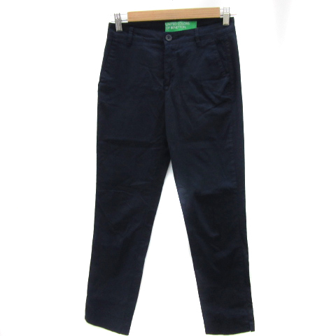 ユナイテッド・カラーズ・オブ・ベネトン UNITED COLORS OF BENETTON スリムパンツ ロング丈 無地 38 紺 ネイビー /YS12 レディース