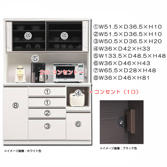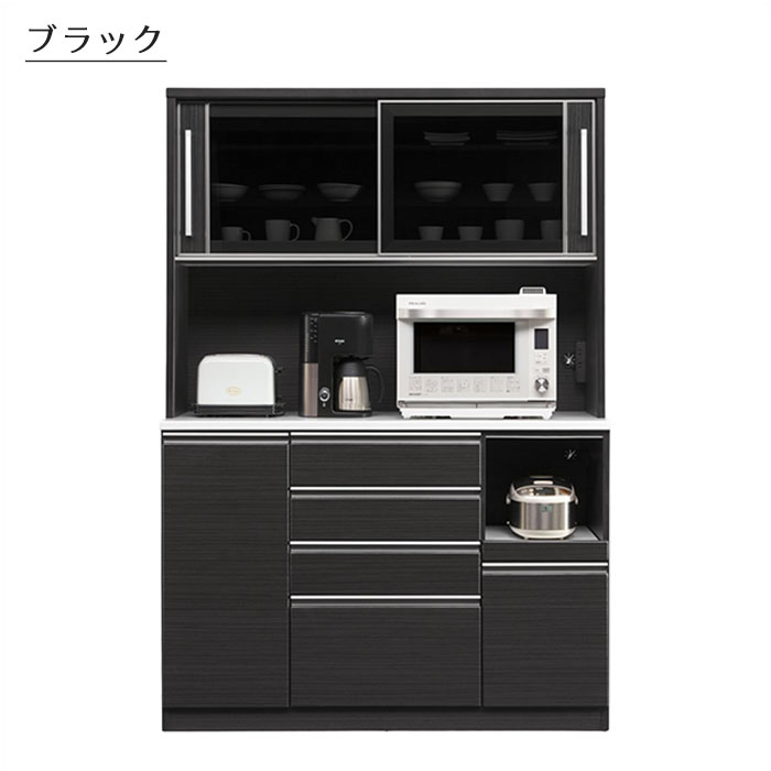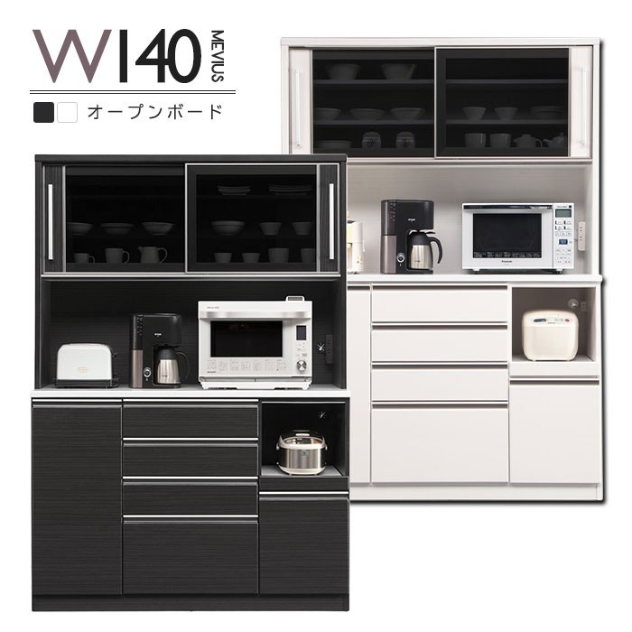幅140cm 食器棚 完成品 レンジ台 レンジボード 引き戸 引き出し キッチン収納 コンセント付き モイス ブラック