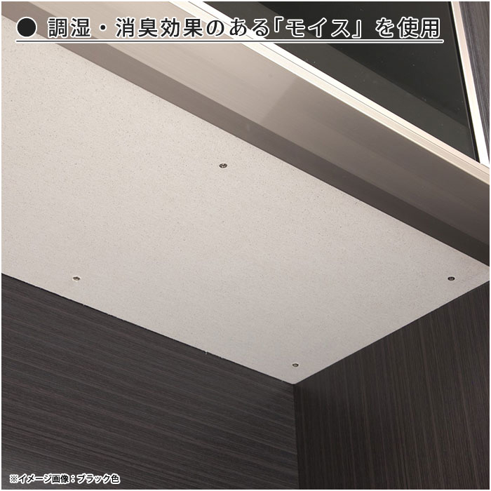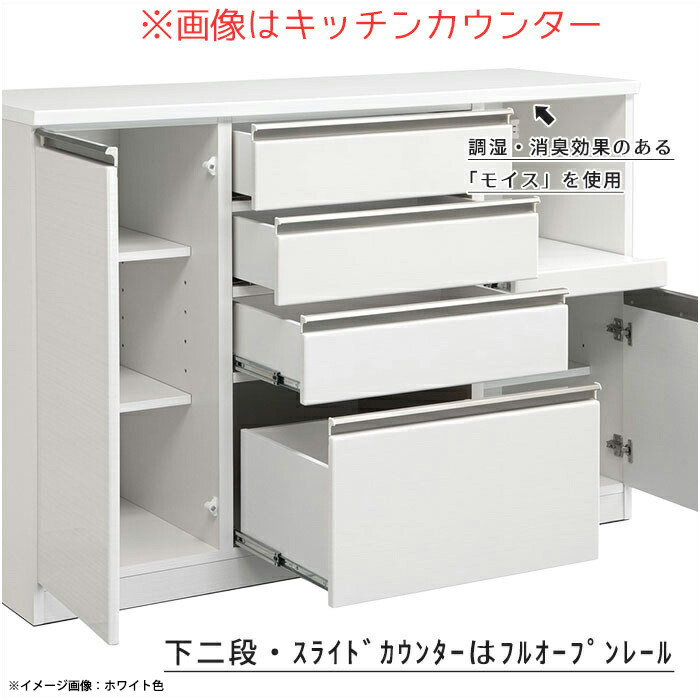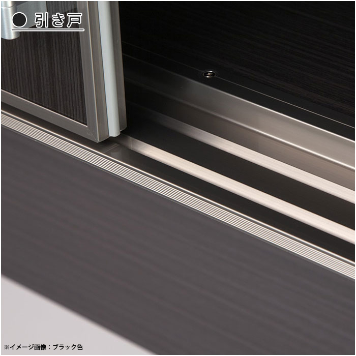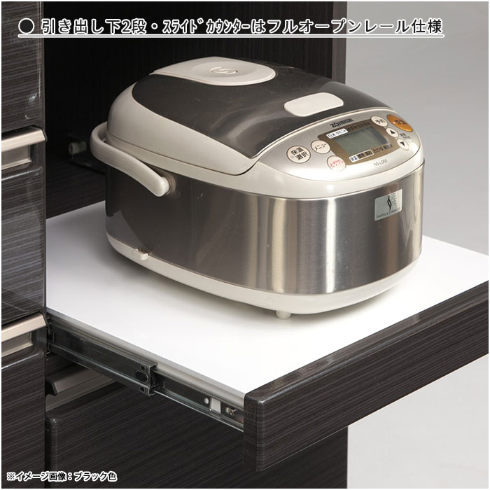 特  徴光沢のあるハイグロスシート貼りのホワイトとモダンな木目ブラックが美しい幅140cm大容量食器棚です。