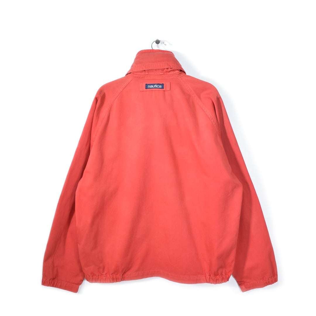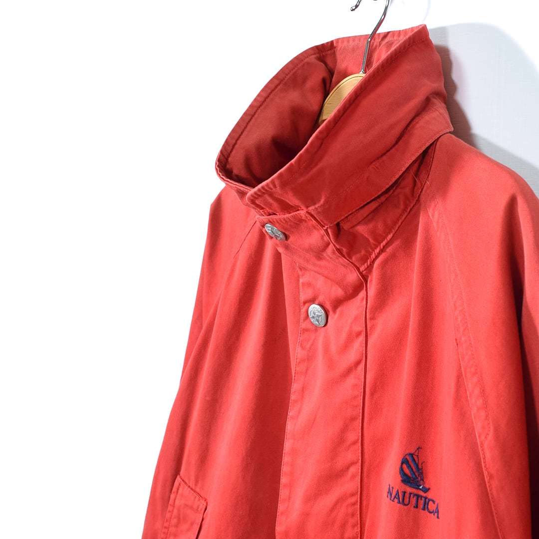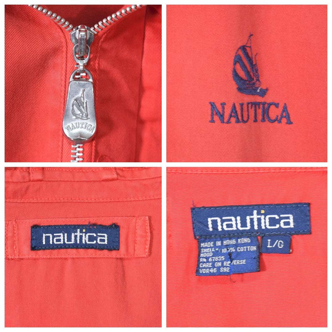 90s ノーティカ 旧タグ ヴィンテージ コットンジャケット ワンポイントロゴ フード収納 赤 NAUTICA サイズL 古着 @DZ0516