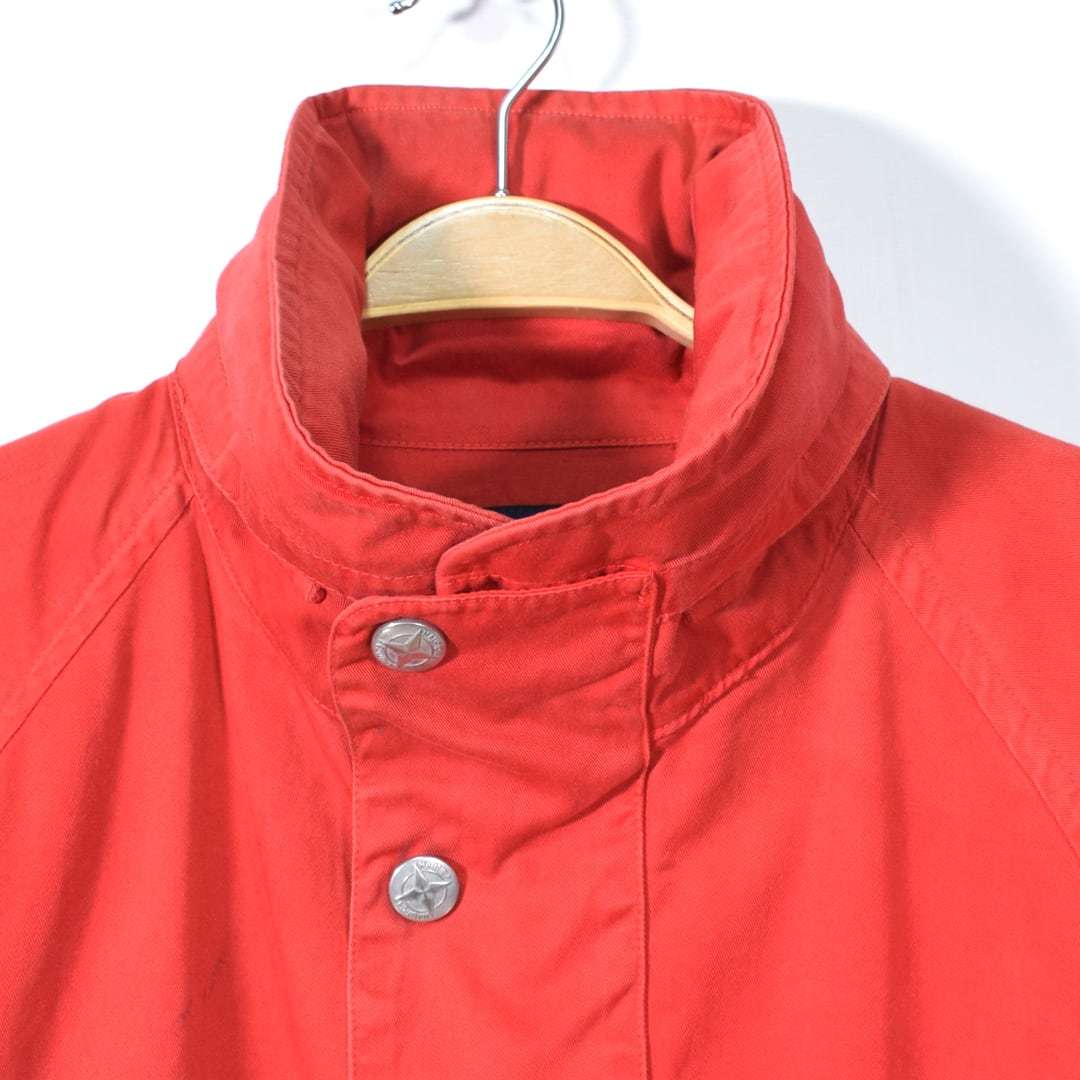 【送料無料】90s ノーティカ 旧タグ ヴィンテージ コットンジャケット ワンポイントロゴ フード収納 赤 NAUTICA サイズL 古着 @DZ0516