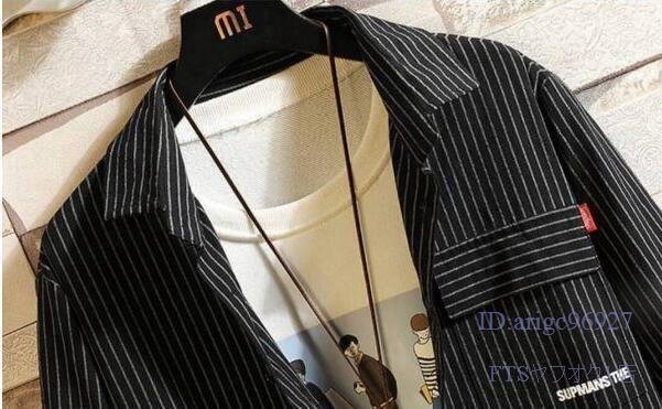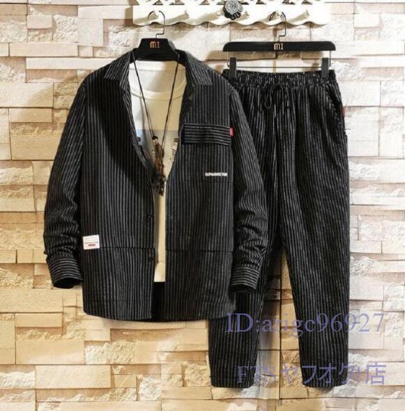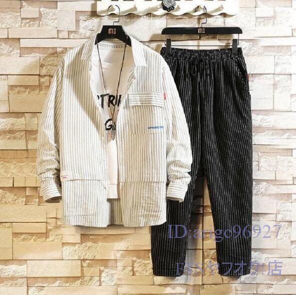 V531☆新品秋冬高品質 セットアップ メンズ 上下セット 長袖 個性 シャツ スウェット 大きいサイズ ボーダー柄 ロングパンツ ジャージ