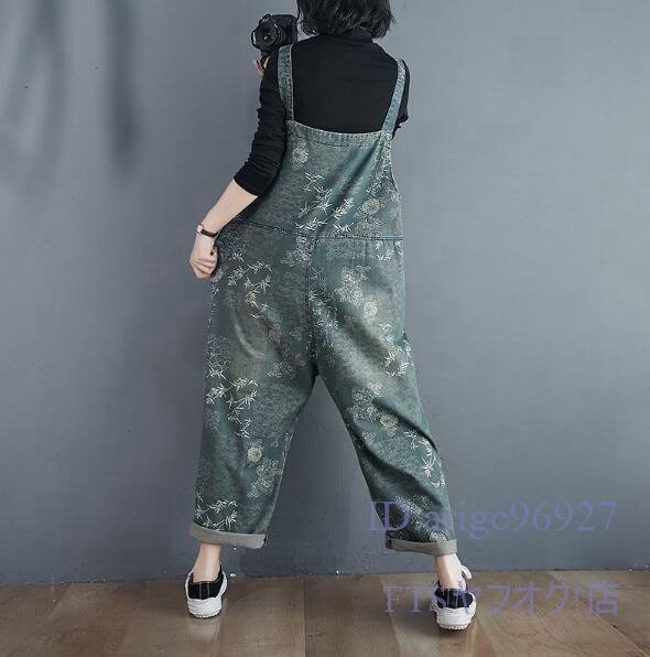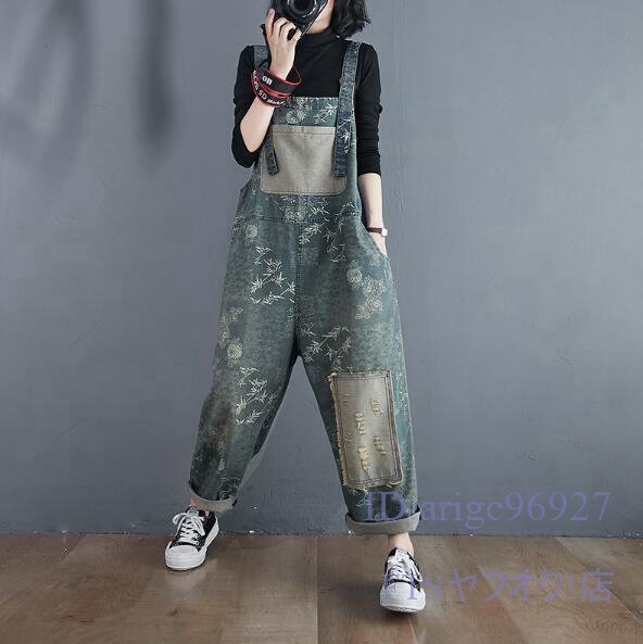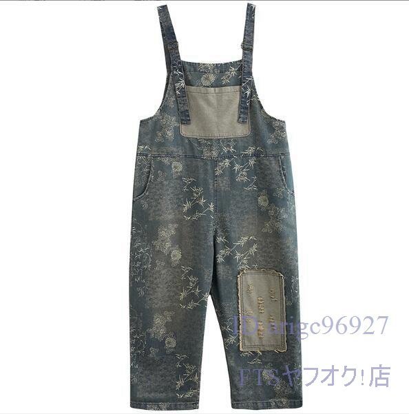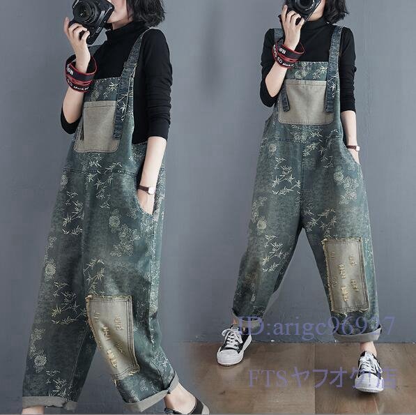 V687☆新品サロペット レディース デニムパンツ デニムサロペット つなぎ オールインワン 花柄 ビンテージ加工 M~2XL