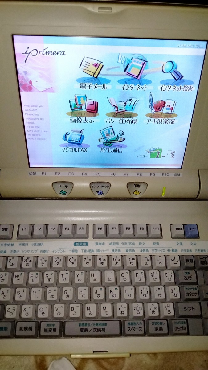 フロッピーディスクの初期化、保存呼び出し、インクリボンなしの為、ワープロ用感熱紙で数行の印刷確認出来ました。