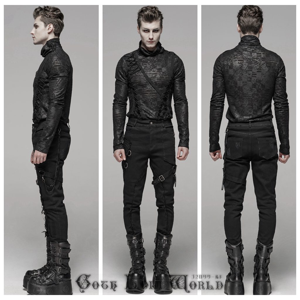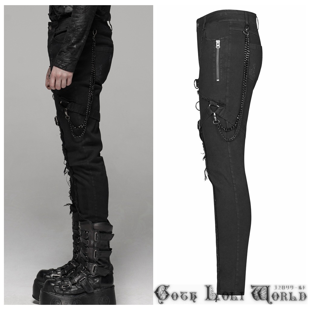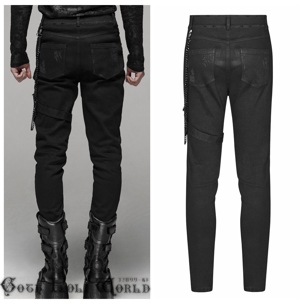 WK-388-M ゴスロリ ウォッシュファブリックブラック チェーン付 パンツ ブラック ゴスロリワールド ゴシック パンク ビジュアル系 V系