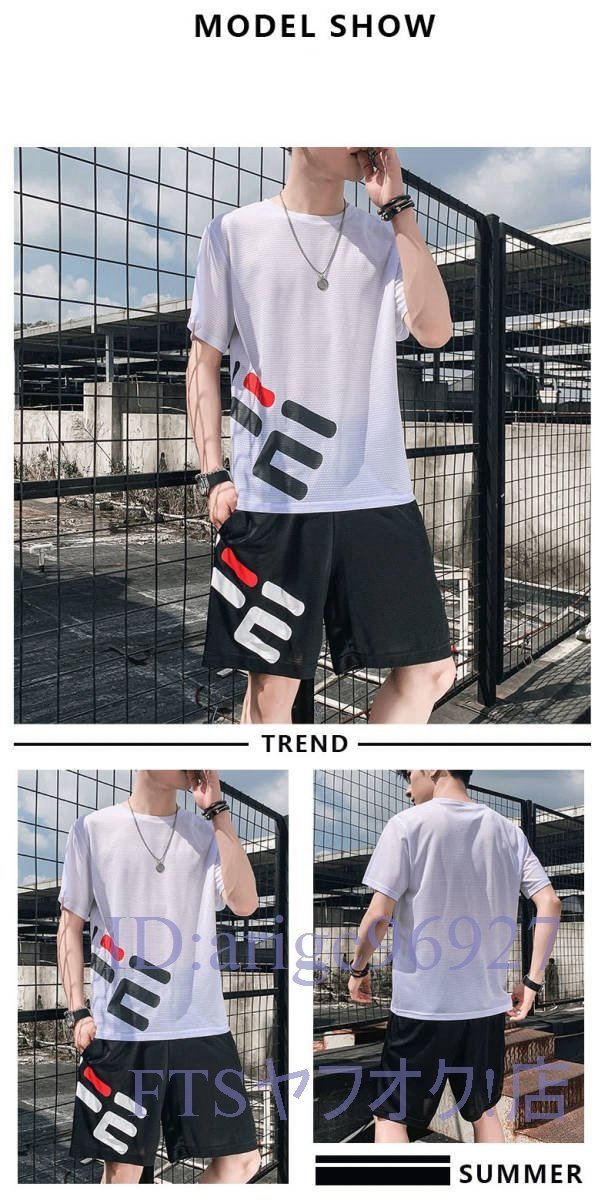 S625☆新品メンズトレーナースポーツウエアセットアップスウェット上下セットジャージTシャツハーフパンツショートパンツ白M~4XL