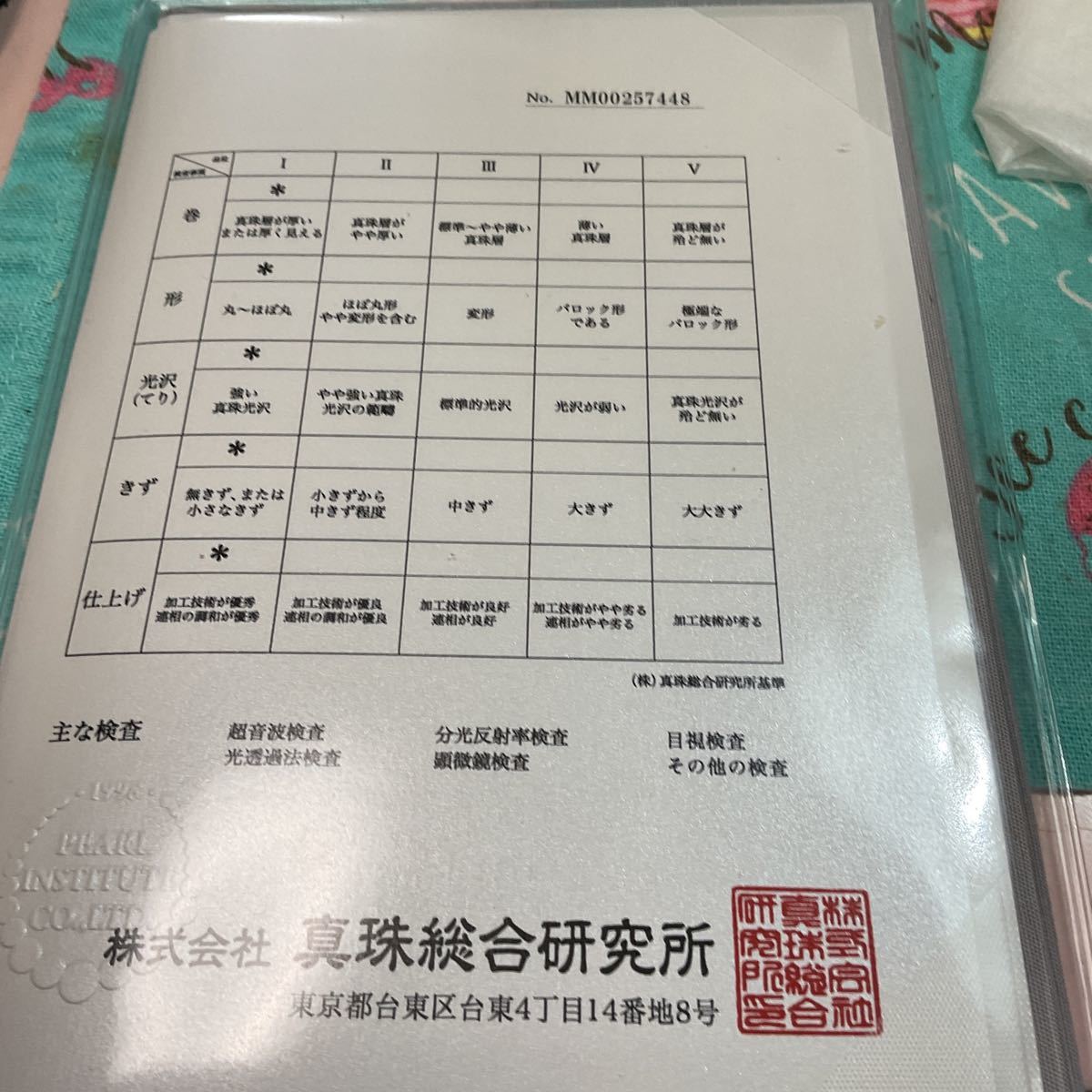真珠総合研究所の花珠鑑別書付き