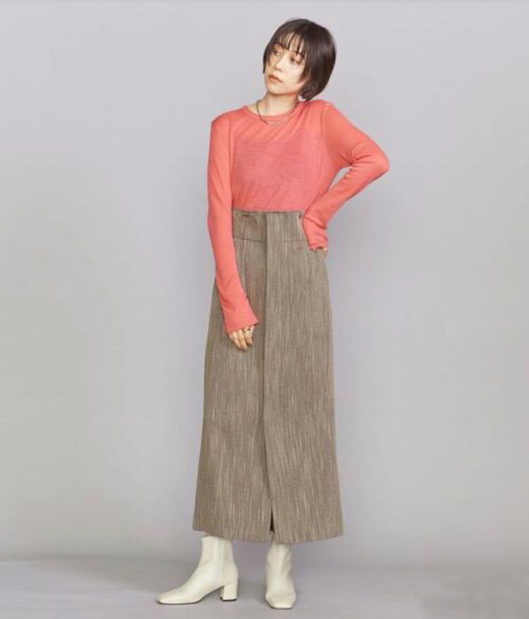 すっきりとしたタイトシルエットは、フェミニンなアイテムや、旬のボリュームトップスとの相性も抜群です。