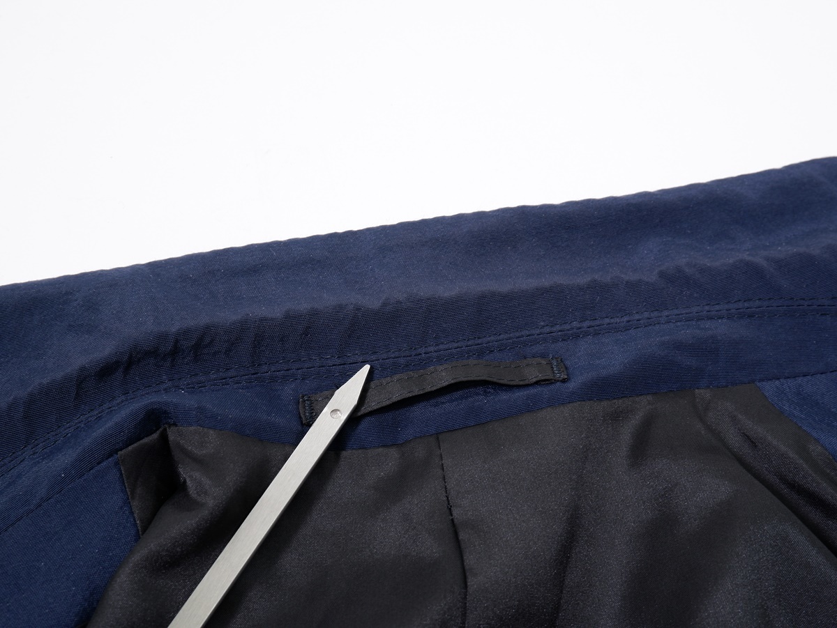 【素材感】シャリ感のあるナイロン混地 【透け感】なし 【裏地】あり 【ストレッチ】なし 【開閉デザイン】ボタン 【付属品(取り外し可)】なし 【商品情報】ナイロン・コットンにステンレスが混紡された生地は、独特な光沢とシャリ感が特徴です。品番US0541・UW0217。 |