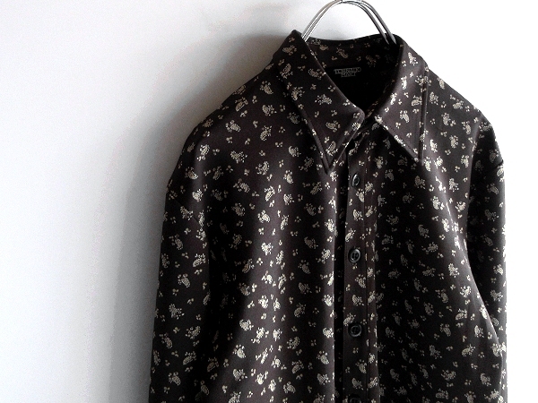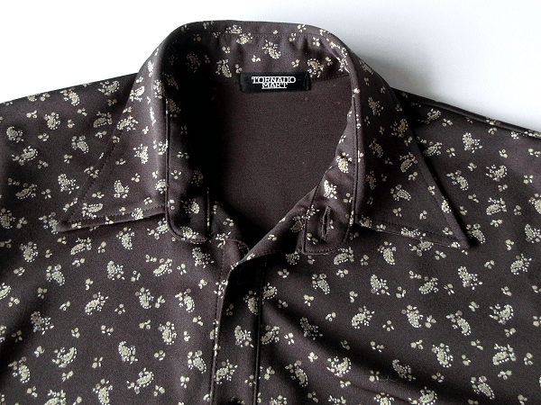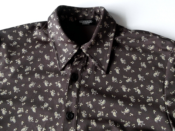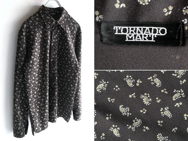 希少 TORNADO MART トルネードマート ペイズリー柄 小花柄 ストレッチ ポリエステルジャージー シャツ 茶黒 日本製 Y2K 00s ネオビンテージ