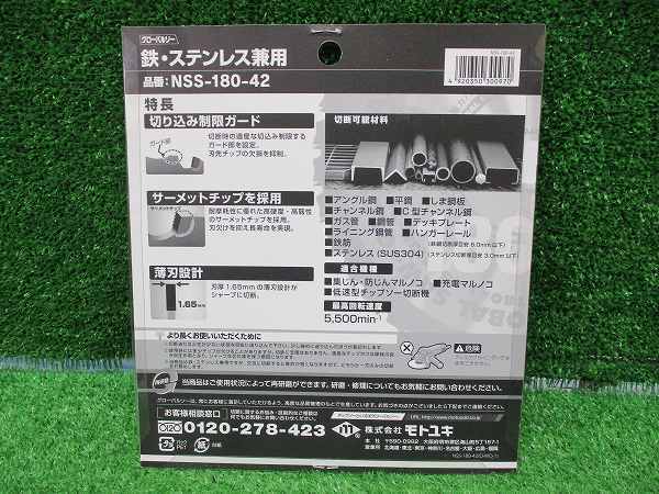 未使用品【 モトユキ 】 NSS-180-42 鉄/ステンレス兼用 グローバルソー 8357