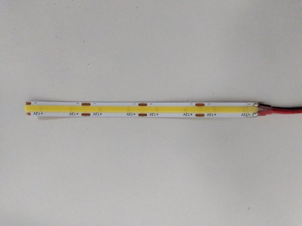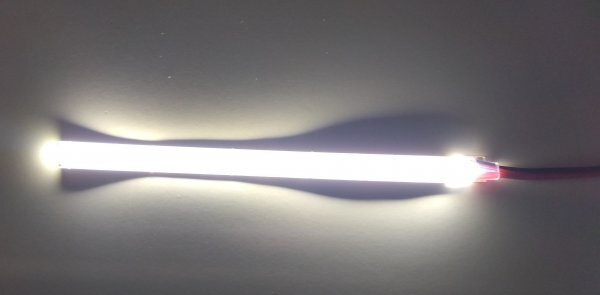 テープLED面発光タイプ極小LED自然色4000Kを約12cm(64LED)にカットした物に、赤黒電線を半田付けしました。