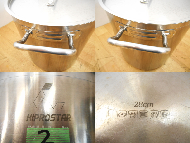 仕様 ●メーカー KIPROSTAR ●型式 IH28 ●外形寸法 W400×D300×H330mm(本体+蓋、突起物含む) ■KIPROSTAR製、ステンレス寸胴鍋を激安価格にて提供いたしますので、この機会に是非よろしくお願いいたします。 ■商品管理の為、管理用のテープを貼っておりますが動作や品質に影響はありませんので、ご了承の上宜しくお願い致します。 ■当方専門業者ではありませんので、細かな動作まではわかりかねますので、細かな点でのクレーム等はお受けいたしかねますので、御了承下さい。 ■当方本商品に対して専門知識がありませんので、専門知識を要する質問、動作にはお答えいたしかねますので、ご了承の上宜しくお願いいたします。 ■新品ではありませんので使用感や多少のキズ等あります。ご理解のうえ入札ください。コンディションに強いこだわりのある方はトラブルの原因となりますので、入札はお控え下さい。 ■TOP画像にあるものが全てです。※大きな商品や重い商品は、台車等に乗っていることや動作確認時に、当方所有の備品を使用して確認しますが、そちらは商品には含みませんのでご理解の程、お願い致します。 | ||