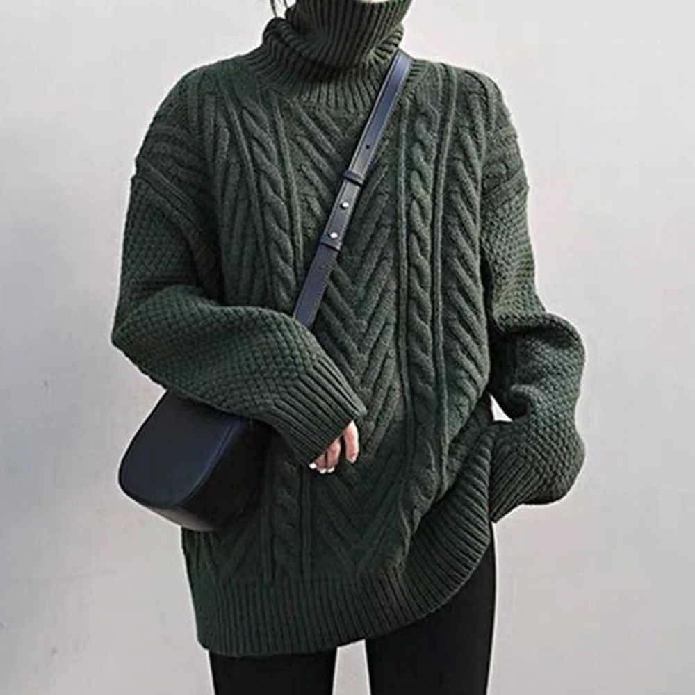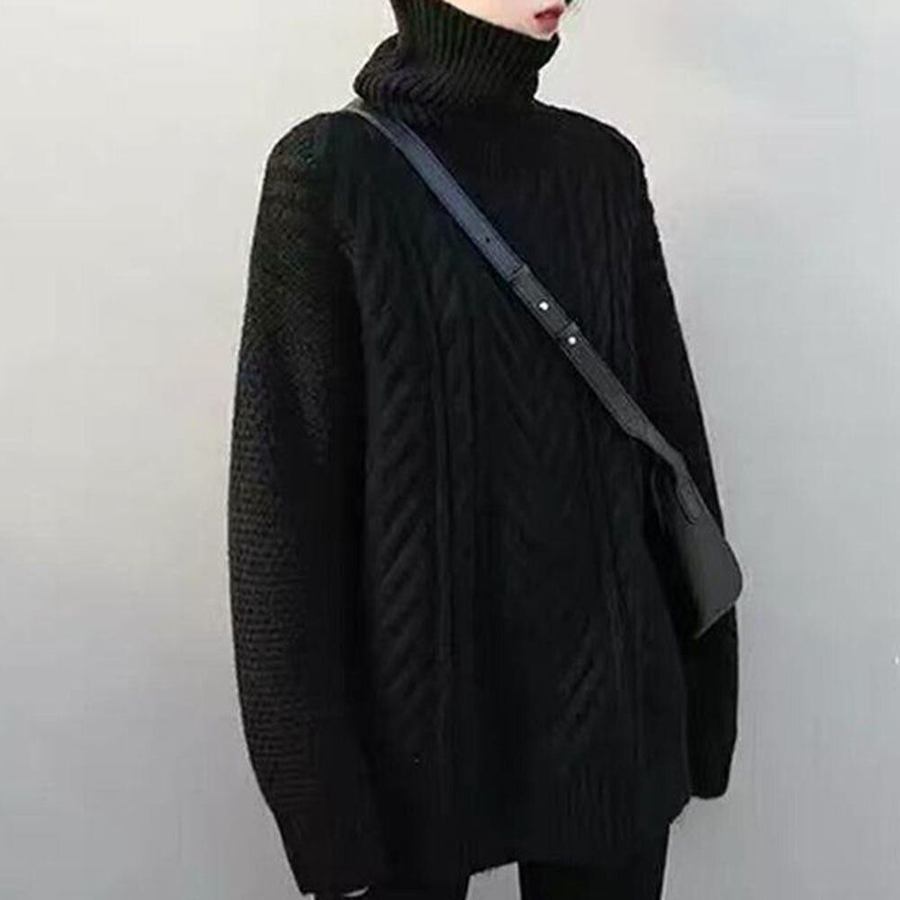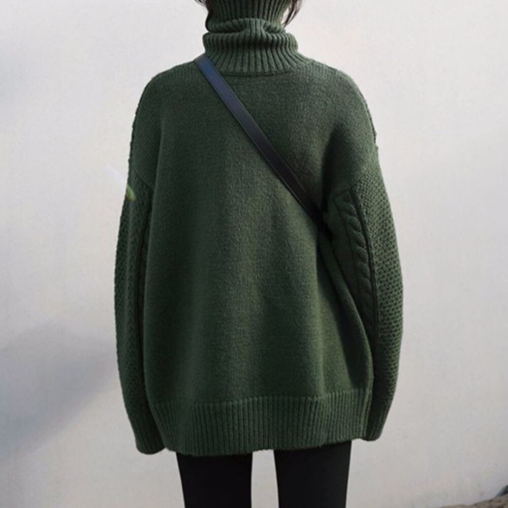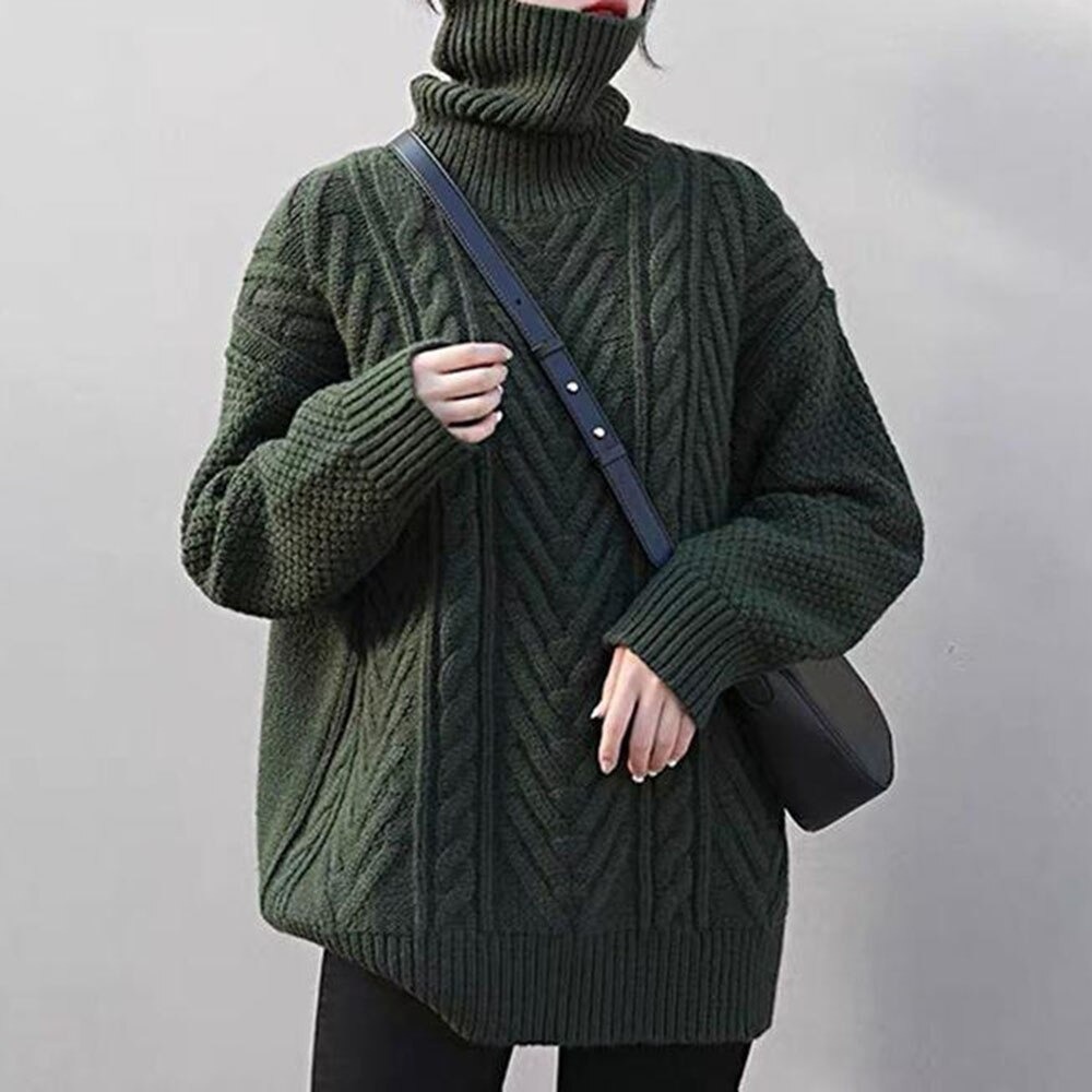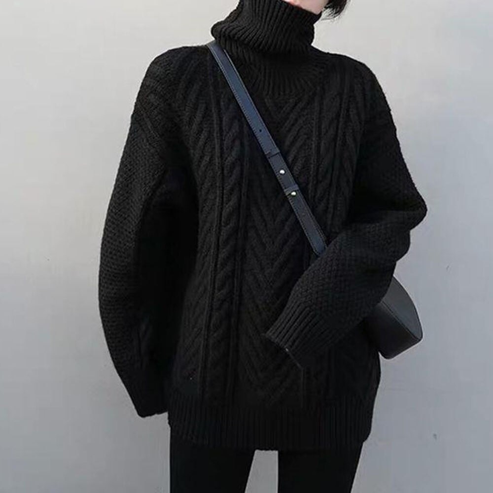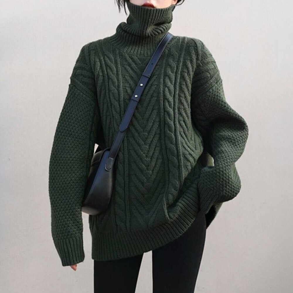 レディース ゆったりニット タートルネック かわいい編み込みニット S/M/L/XLDJ608