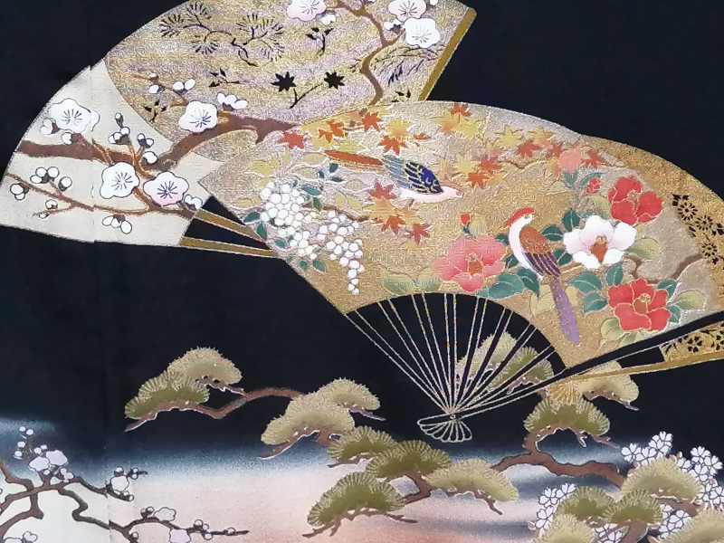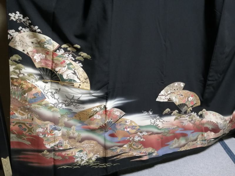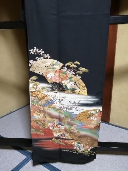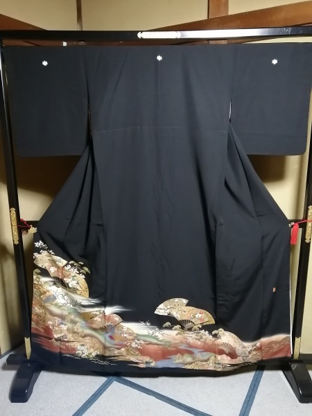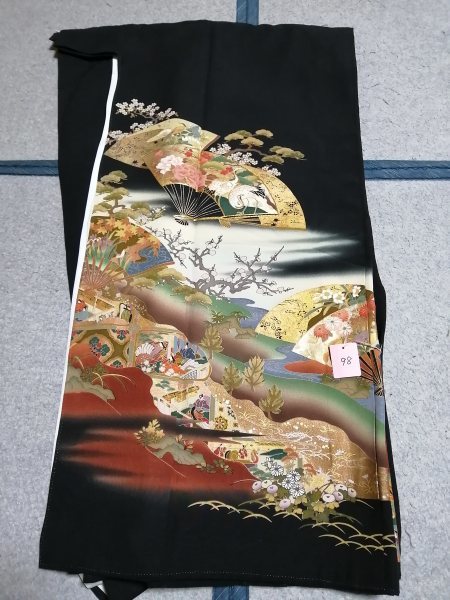 n098 正絹 留袖 (裄66 袖丈47 身丈(肩から)160 前24 後30センチ 五ッ紋・五三の桐) ※比翼・裏地→化繊
