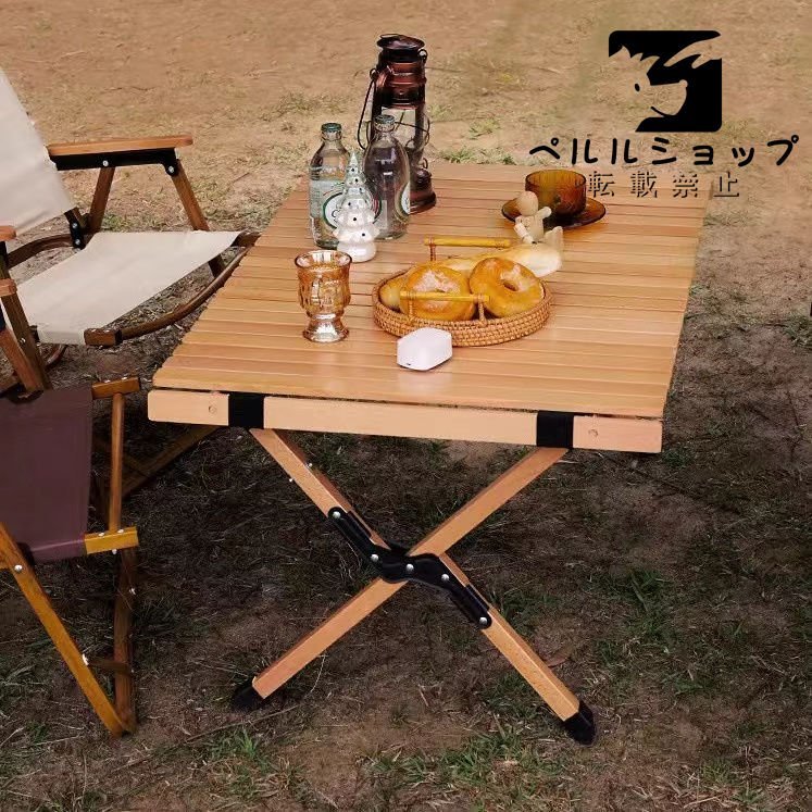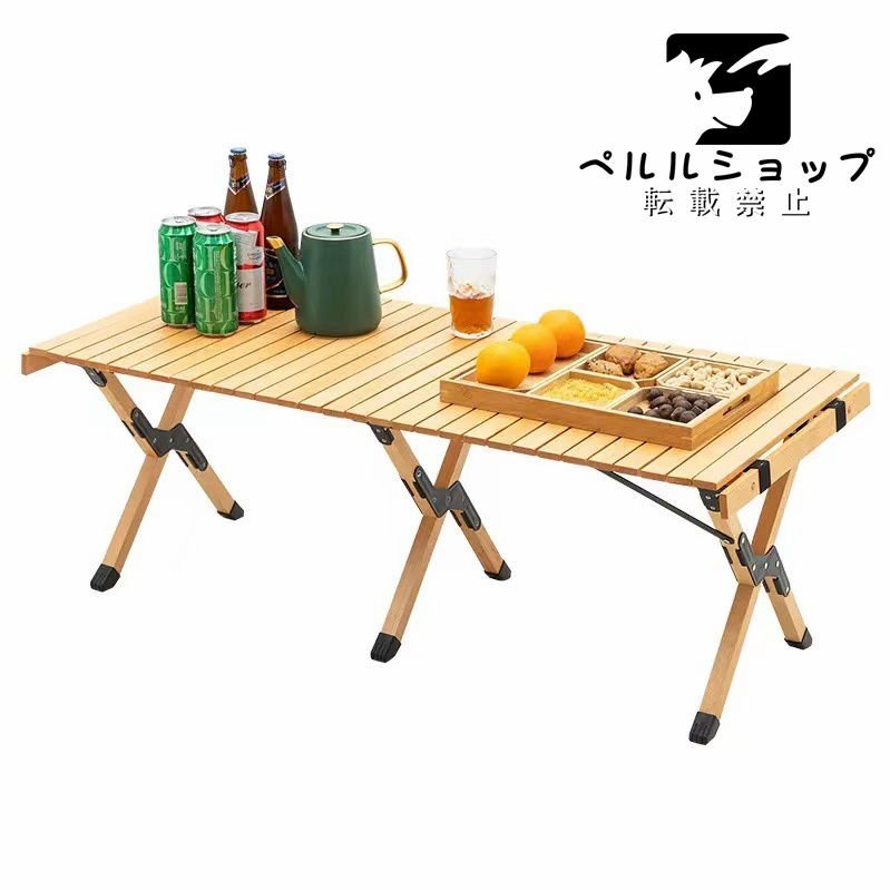 アウトドア テーブル ウッドロールトップテーブル 天然木 折畳み コンパクト 収納 簡単組立 収納バッグ付 ローテーブル キャンプ