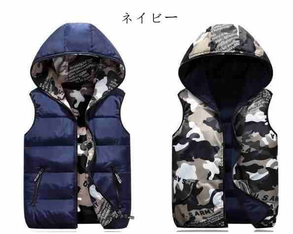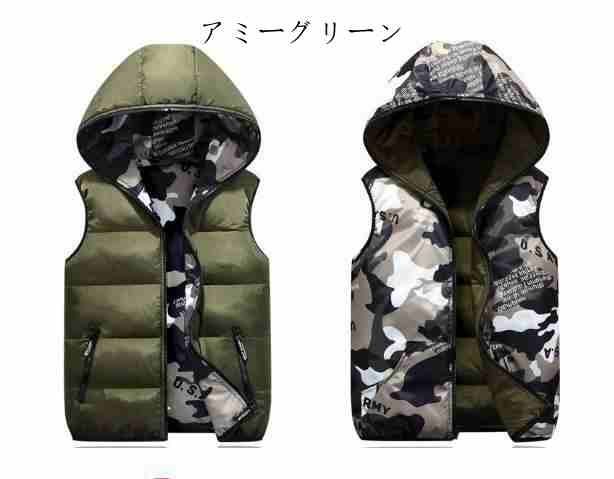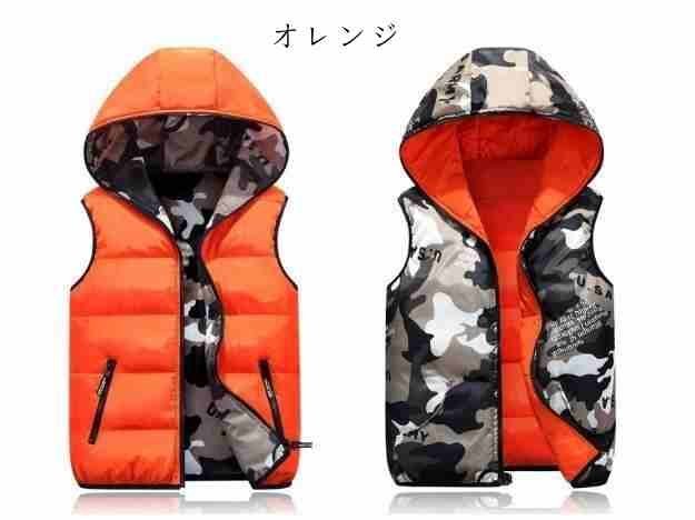 7色!秋冬新品★メンズダウンベスト フード付き 細身 切替 カジュアル 人気 保温軽量 迷彩風 おしゃれ DJ079