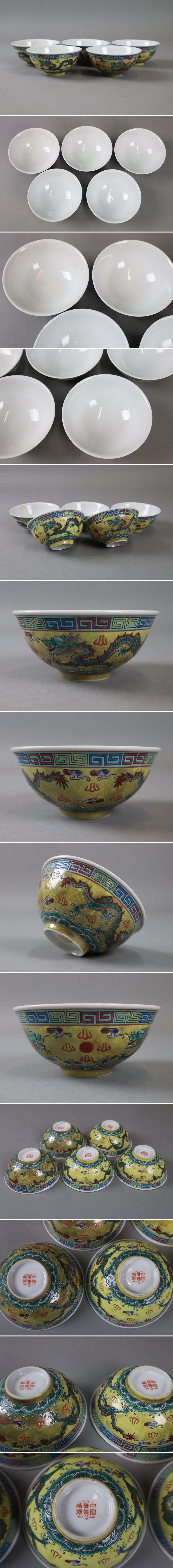 中国景徳鎮 十錦 龍図 煎茶碗 5客 ● 茶道具 煎茶道具 中国 古玩 古美術 清朝時代 急須 湯呑 茶器 骨董 細密細工 古美術品[c276]