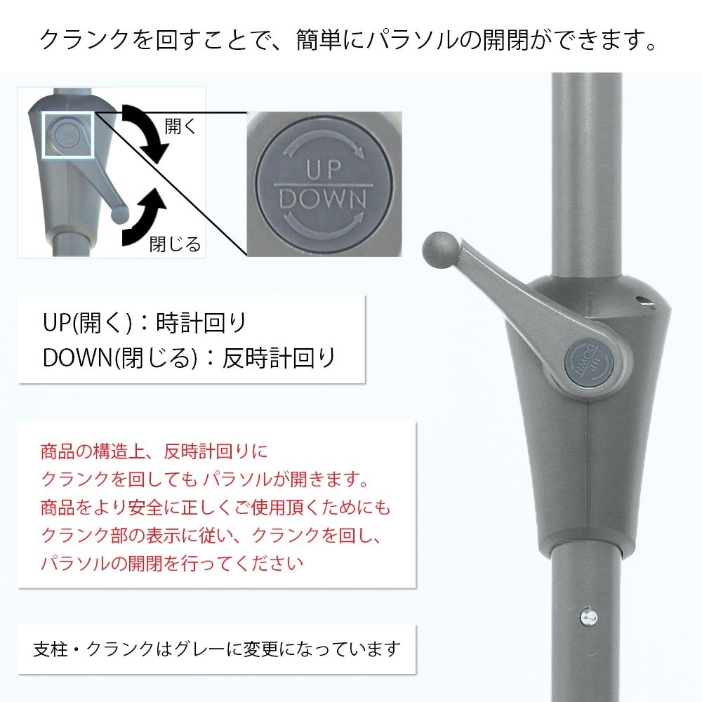 クランク(レバー)を回すことで、パラソルの開閉ができます。