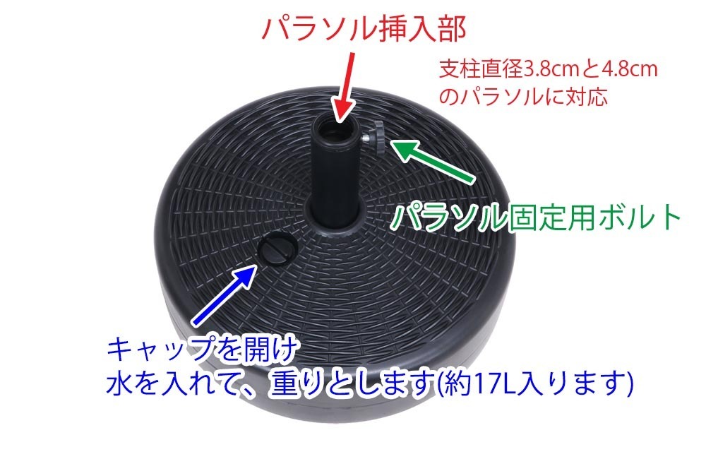 ウォーターベースは水を入れて、重りにする扱いやすいタイプ(約17L入ります)