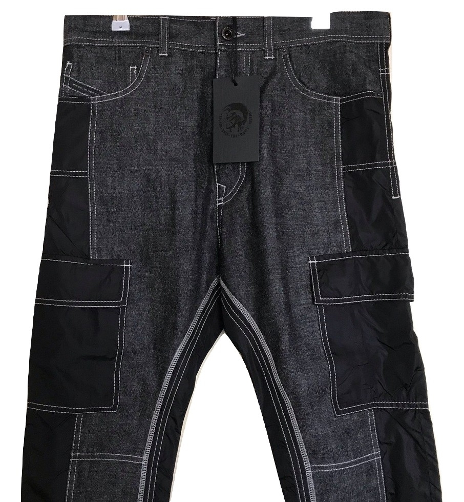 新品タグ付き DIESEL BLACK GOLD コレクション 切替素材 カーゴ デニム テーパード ジーンズ ブラックゴールド メンズ 黒 W28 Sサイズ