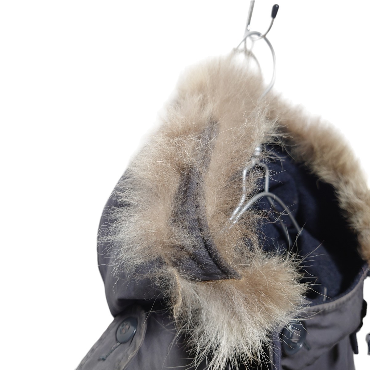 化繊のファーや袖のリブ、パラシュートボタンなどしっかりとした作りです。