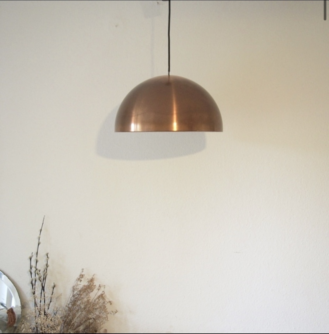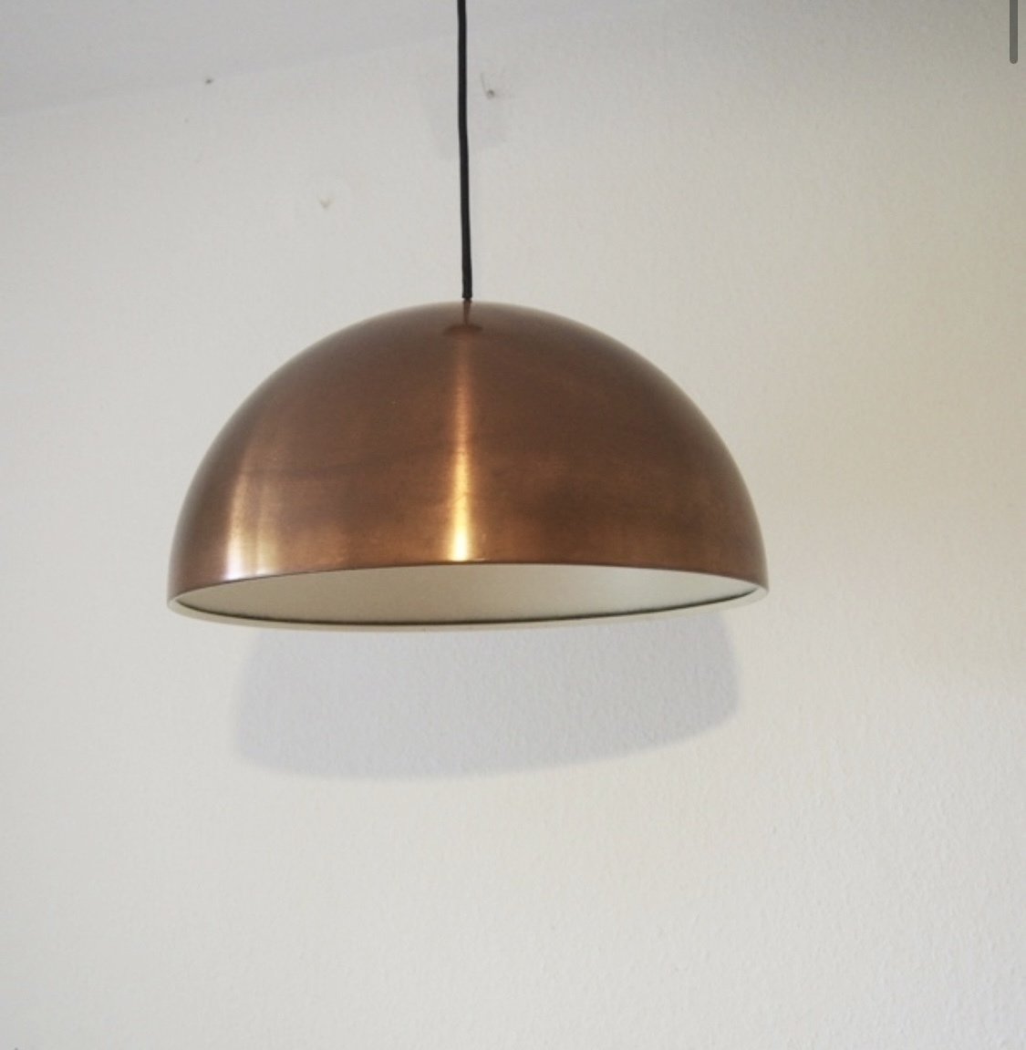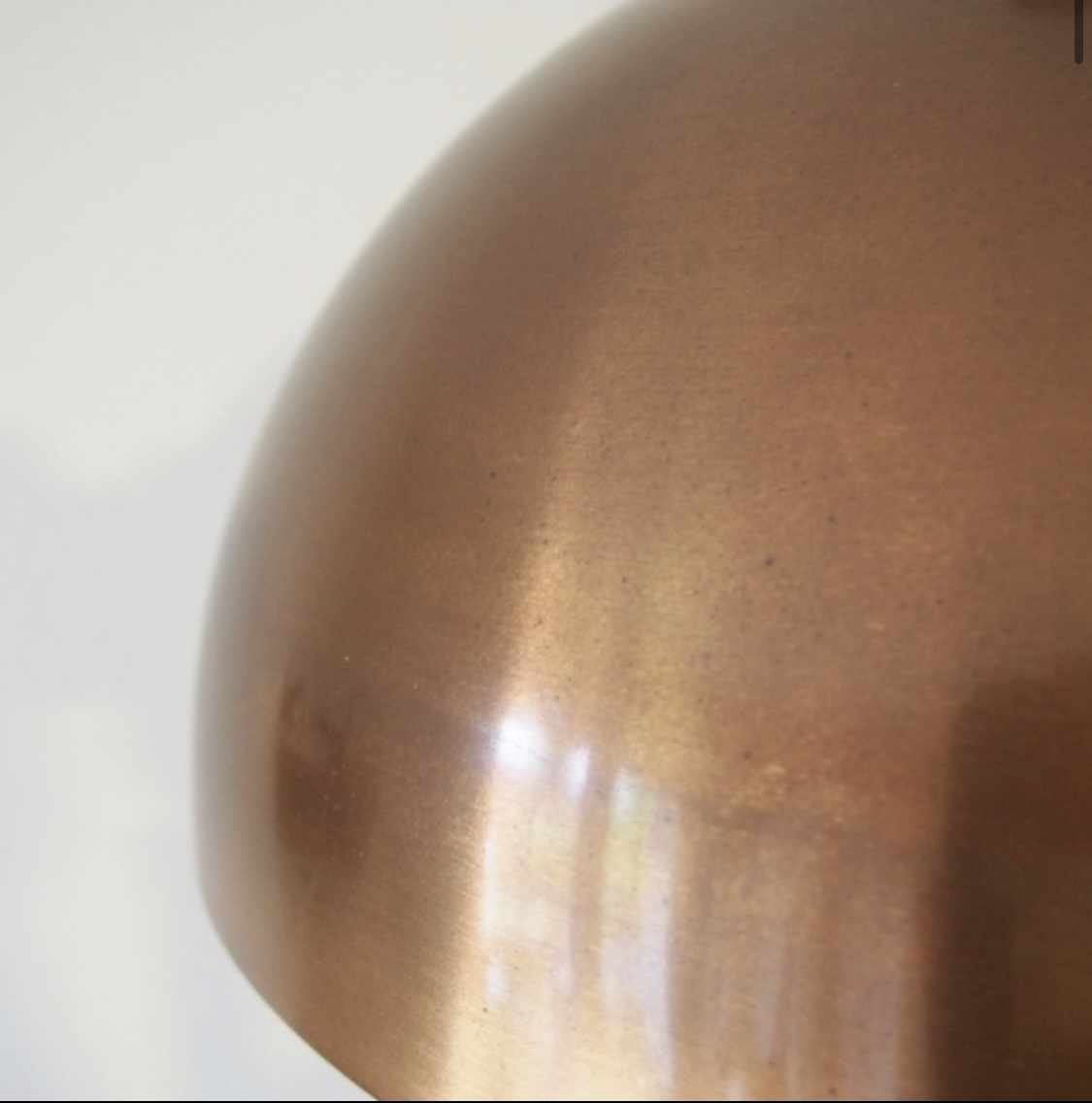 落ち着いたマット真鍮製で、経年変化による様々な表情を見せてくれ、内側のこれもマットホワイトベージュの優しい色合いと相まって、とても洗練された雰囲気を醸し出しています。