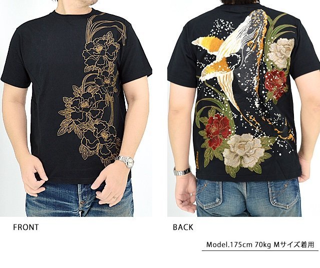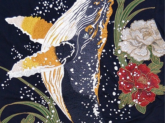 絡繰魂さんから「粋 古のザトウクジラ半袖Tシャツ(242052)」のご紹介です。 重みすら感じるほどの刺繍量が魅力的な粋シリーズから、最新作が登場しました。 今回は巨大なザトウクジラを背中にダイナミックに落とし込みました。 裾にはブランドロゴを印風に刺繍しました。 フロント左身頃には牡丹の花をアウトラインのみで刺繍。 こちらはシンプルに表現することで、メリハリのあるデザインになっています。 ボディーには、刺繍に負けないコシのある綿100%の生地を使用。 | |||||||||||||||||||||||||