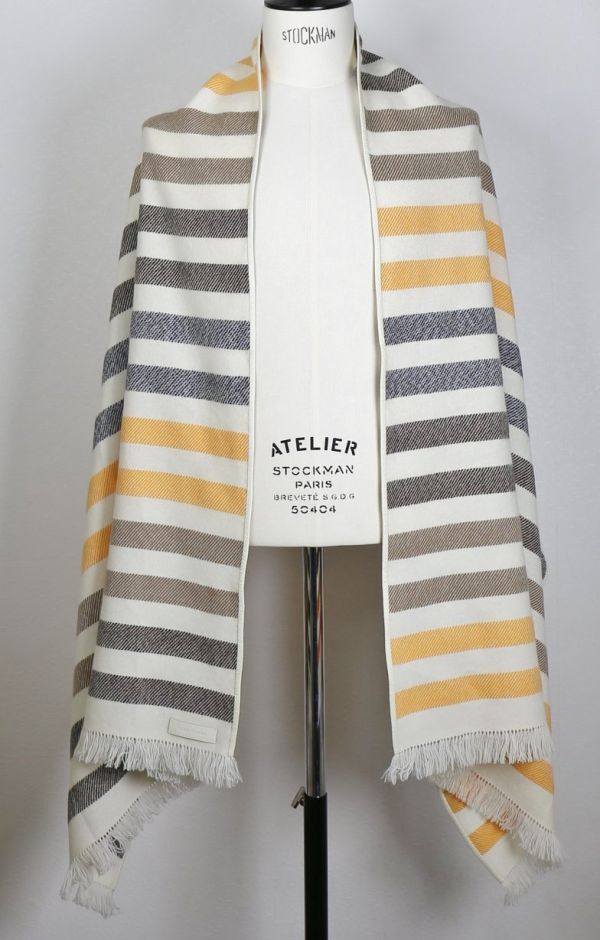 HERMES エルメス 大判 マルチ ストライプ カシミヤ ストール マフラー cashmere <色> 画像を参考にお願いします <素材> 本体カシミヤ100% パイピング部分牛革 皮革部分(ラベル)牛革 <寸法> 73.5x193(フリンジ含まず)(単位:㎝) <商品状態> 品質表記は使用に邪魔なので取り外されています。(付属)使用感の少ない綺麗なお品です。 <備考> ネパール製、国内購入品、近年モデル ■支払方法 YAHOOかんたん決済で落札価格+送料をお支払いください。 ■発送詳細 佐川急便、送料全国一律900円