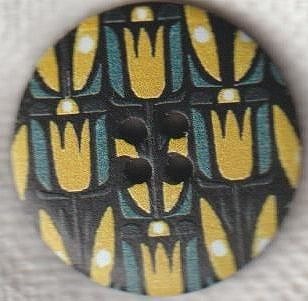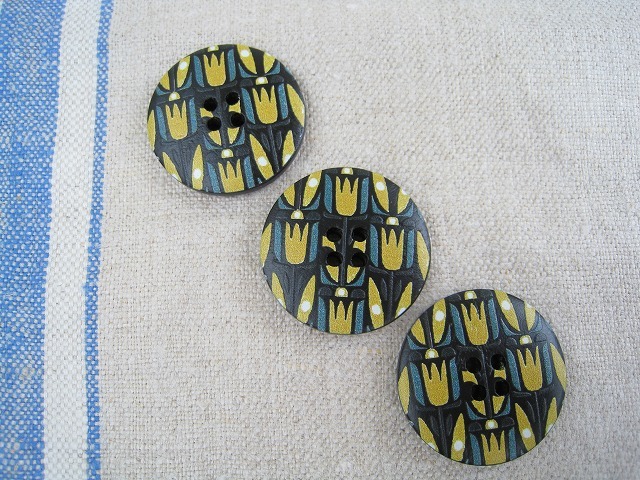 ドイツ ウッドボタン 2穴ボタン 黒にフラワープリント