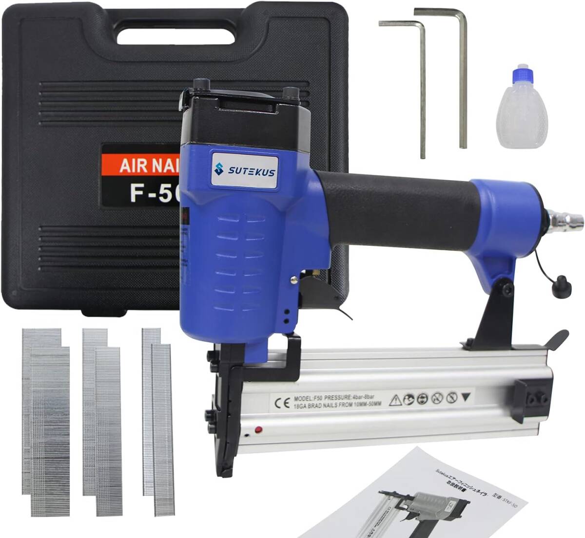 Sutekus エアーフィニッシュネイラ エアータッカー 常圧 仕上げ釘600本付き 軽量・コンパクト 誤射防止 日本語取説付属 F50 B08Y8CX7Y1